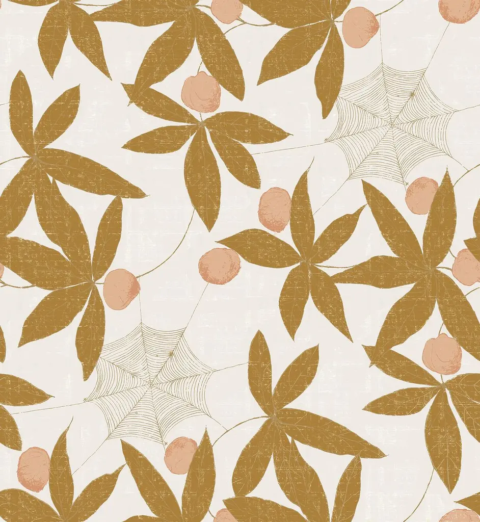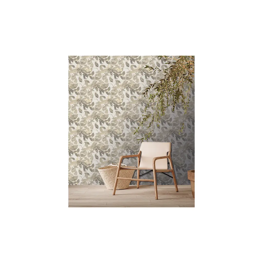 Beech Tree Leaves Botanical Textured Double Roll Wallpaper, Warm Taupe, Double Roll