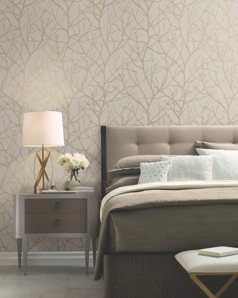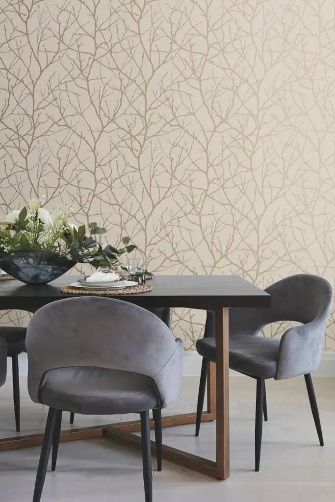 Beige & Gold Trees Silhouette Wallpaper