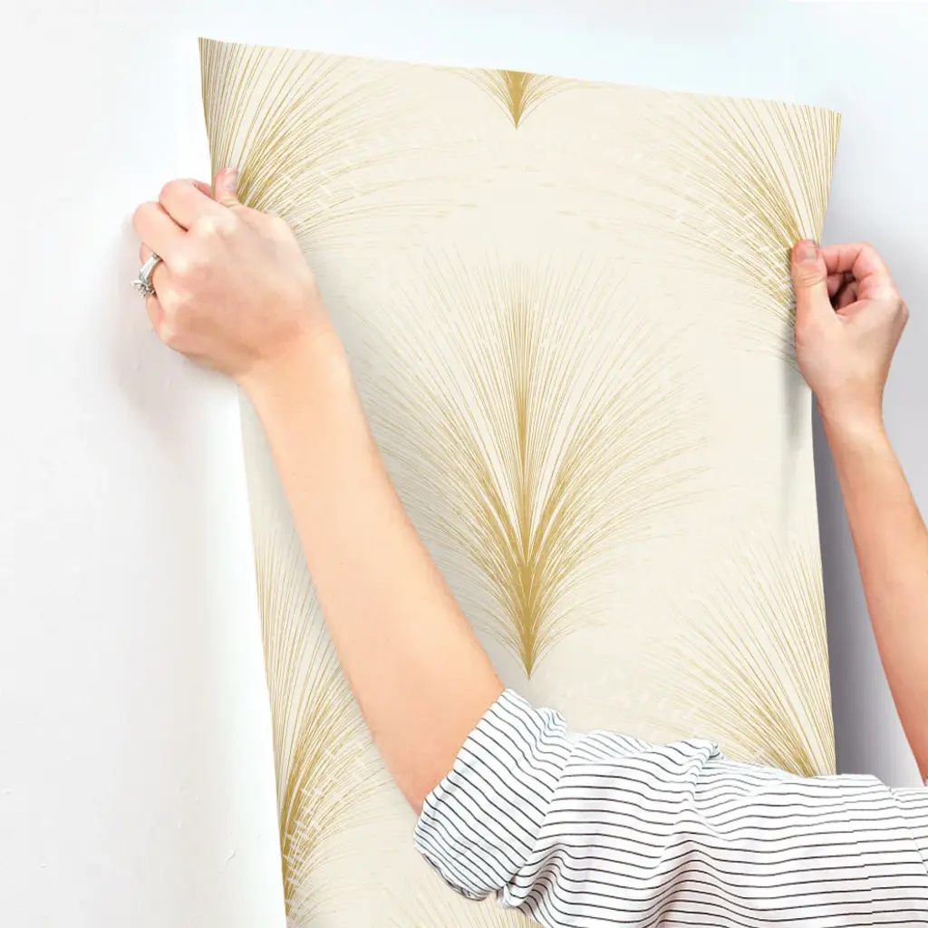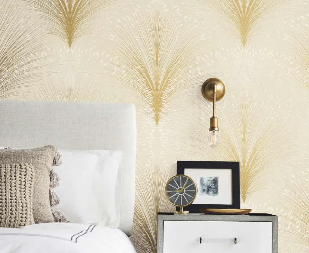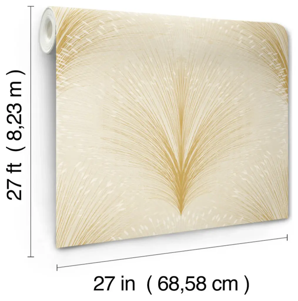 Layered sheaths of stems provide an organic bouquet in homage to this ancient natural wetland grass in Papyrus Plume, shown in beige with antique gold metallic. This Papyrus Plume Wallpaper measures approximately 27 inches wide by 27 feet long, measuring approximately 60.8 square feet per roll. The modern aesthetic of natural form. Unpasted non woven material24-in repeat, straight matchWashable and strippable27-in by 27-ft long rollCovers about 60.8 square feet