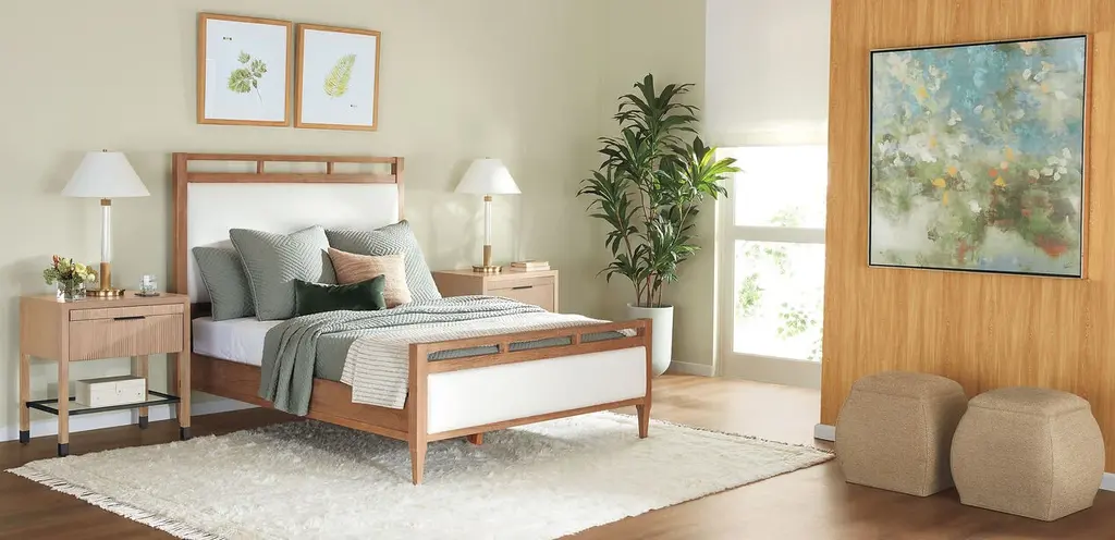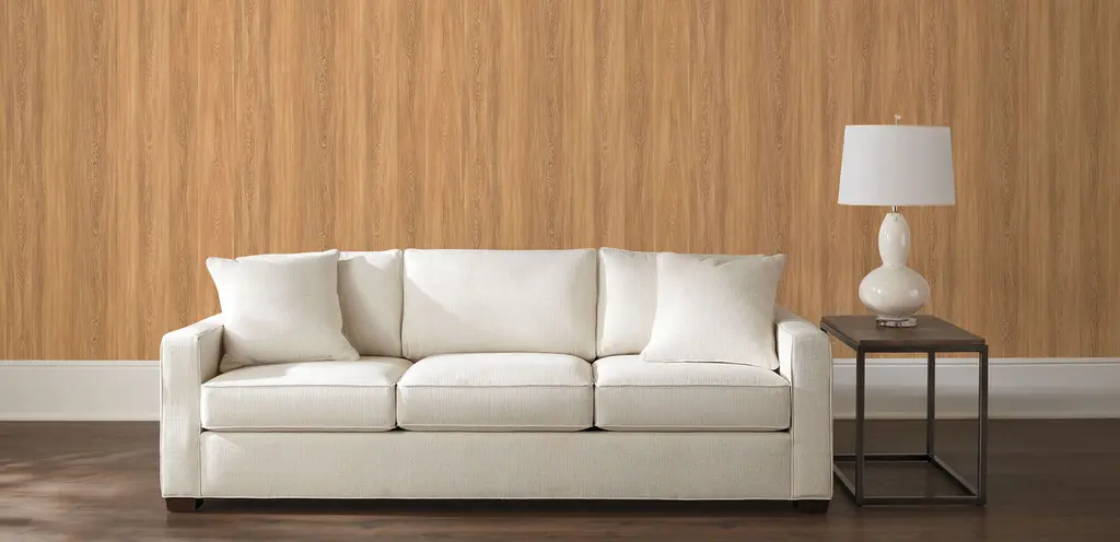 With a wood-look wallpaper grain pattern inspired by white oak, Benton brings coziness, natural visual texture, and bit of retro chic into classic and modern spaces alike. Place it on a feature wall behind your bed, or use it as a background for statement artwork or a mirror.