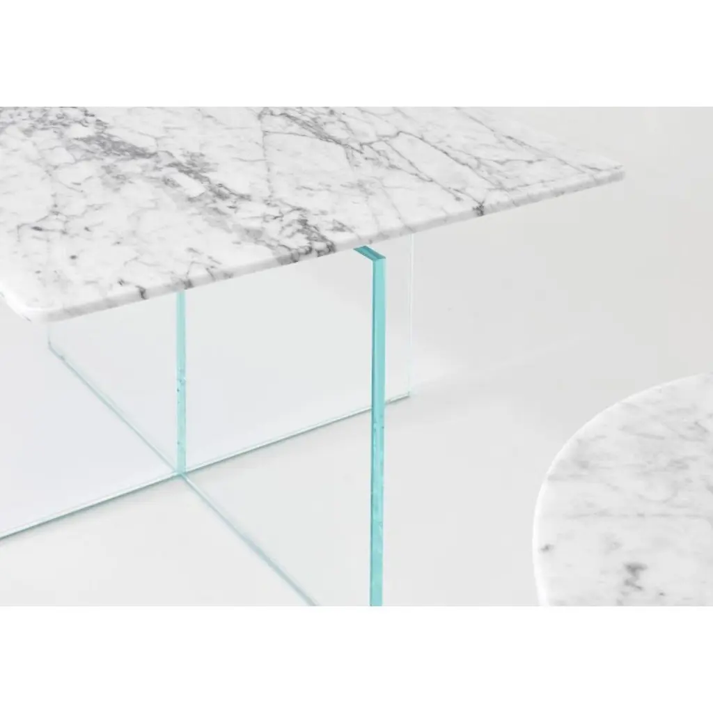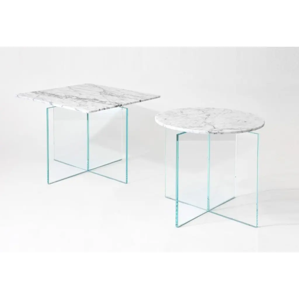 Beside Myself end small table by ClasteDimensions: D 45.7 x W 45.7 x H 55.9 cmMaterial: Marble, GlassWeight: 41 kgAlso available in different sizes. Since 2017 Quinlan Osborne has cultivated an aesthetic in his work that is rooted in the passion for contemporary design he developed while practicing as an Architect for fi fteen years prior to shifting his attention to the world of collectible design and furniture. Representative of a new form of minimalism his studio produces a refi ned, sensual series of works which provide subtle moments of refl ection, devoid of distraction yet monumental and bold. The sculptural nature of his work explores new ways and means of infusing traditional materials such as marble and glass with notions of fragility and tension that elicit a deeper more emotional connection resulting in pieces that appear impossibly stable yet permanently grounded. Through ingenuity and artistry his work fuses an in-depth knowledge of tradition- al techniques of craftsmanship and artisanry with a desire to push the boundaries of what is possible with modern technology and fabrication processes, blending the familiar with the extraordinary and inviting people to re-examine their expectations of what furniture should be and how it is traditionally used.His work has been recognized with numerous high-profi le international design awards, including the Archiproducts Design Award, the Good Design Award from the Chicago Athenaeum: Museum of Art and Design and the Grands Prix du Design for Quebec. He has also been featured in several signifi cant design and lifestyle publications around the world including Elle Décor, T Magazine, Architectural Digest, Wallpaper, Surface Magazine and many others.