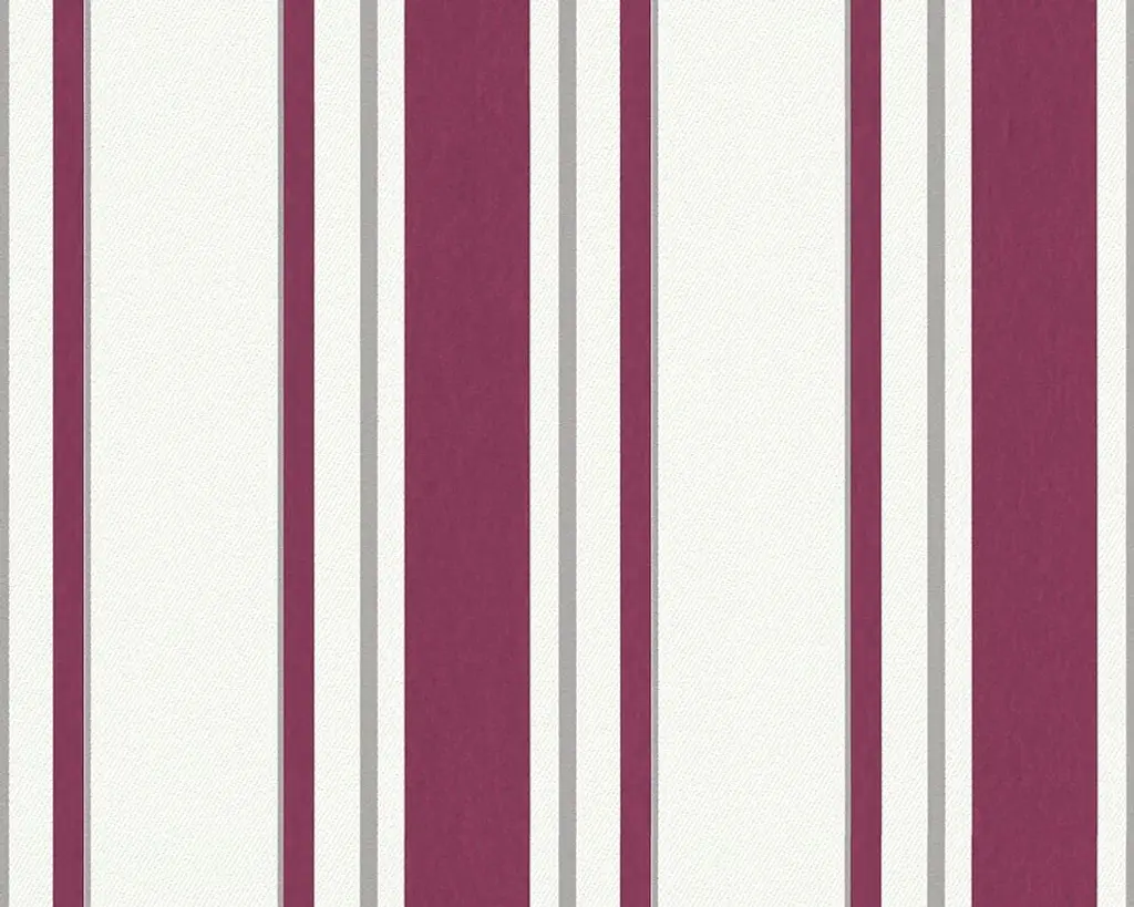 Best Of Vlies, Floral Patterns Classic Stripes Voilet & White Wallpaper Roll