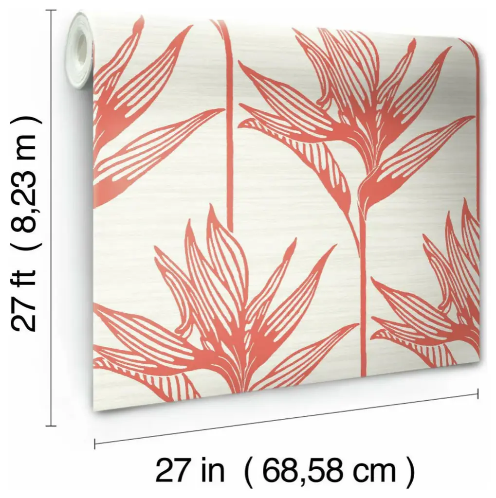 Tropical style is much more than untamed gardens of exotic beauty. It is the embodiment of modern affluent lifestyle and leisure. Manufactured on Sure Strip�, a unique high performance substrate, this ultra-easy removable wallpaper is guaranteed easy to install and easy to remove; simply use water to activate. The oversized modern silhouette of pattern Bird of Paradise gives this iconic tropical flower urban sophistication. Includes 1 roll - 27 in x 27 ft = 60.75 sq ft with a drop match and 25.25 in repeat.