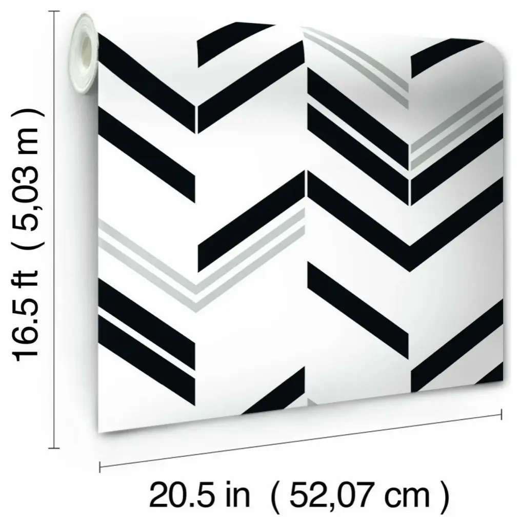 Watch your space pop with personality with Chevron Peel and Stick Wallpaper. Designed with a black and soft grey chevron pattern, this removable wallpaper will add a statement to any space no matter the size! Simply peel off the backing, apply to a clean wall, and smooth to remove any bubbles. Roll size - 20.5 inches x 16.5 feet. Design has a Straight match with a 20.5 inch repeat. Covers 28.18 square feet.; Peel and stick to apply � no water, no paste, no mess; 100% removable peel and stick wallpaper.; No sticky residue left behind upon removal; Where to Apply - Our wallpaper adheres to any smooth, flat, and clean surface. Walls should be cleaned before use. Our products are not designed for textured walls.; Repositionable, washable, and strippable; Superior strength & properties to regular contact paper (thicker & leaves no sticky residue behind); Perfect for both renters and homeowners.