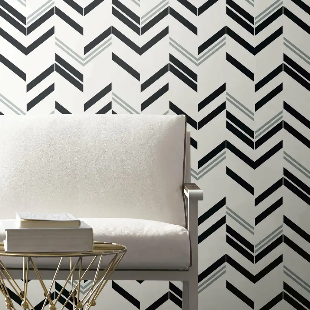 Black & Grey Chevron Stripe Peel & Stick Wallpaper