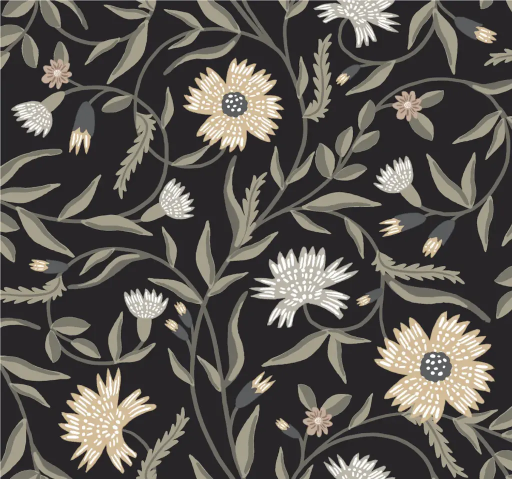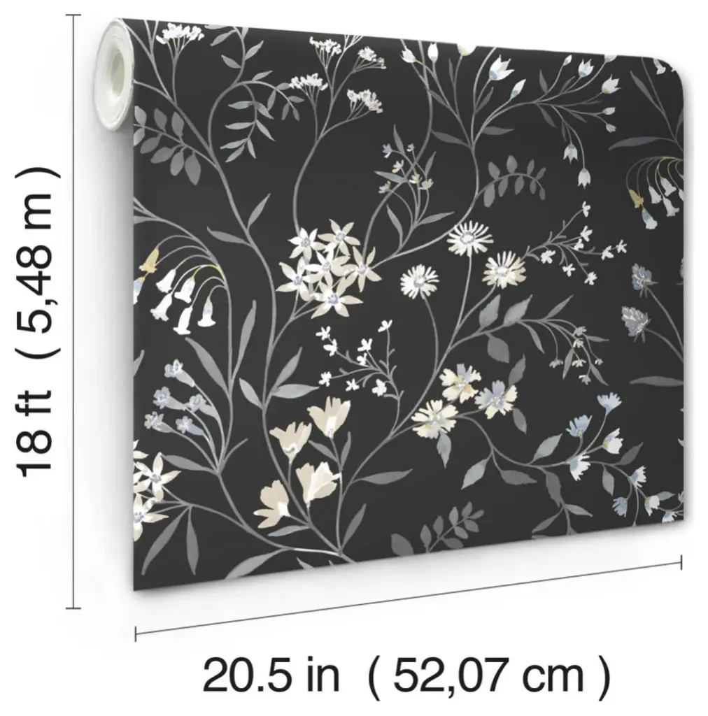 A garden of beauty awaits with this Meadow Mix Peel and Stick Wallpaper from RoomMates. Wander freely through this flowery meadow in a soft and subtle range of captivating hues with a black matte base. Design an accent or feature wall in any space including the living room, bathroom, bedroom, kitchen, nursery, or dining room. Explore the entire peel and stick collection for a wide variety of floral and botanical designs. RoomMates peel and stick wallpapers are an easy and affordable way to decorate; simply peel off the paper backing and smooth onto the wall. When it''s time to redecorate, remove in full strips with no remaining sticky residue or damage to walls. Roll size - 20.5 inches wide x 18 feet. Design has a Straight match with a 20.5 inch repeat. Covers 30.75 square feet.; Peel and stick to apply no water, no paste, no mess; 100% removable peel and stick wallpaper.; No sticky residue left behind upon removal; Where to Apply - Our wallpaper adheres to any smooth, flat, and clean surface. Walls should be cleaned before use. Our products are not designed for textured walls.; Repositionable, washable, and strippable; Superior strength & properties to regular contact paper (thicker & leaves no sticky residue behind); Perfect for both renters and homeowners; .