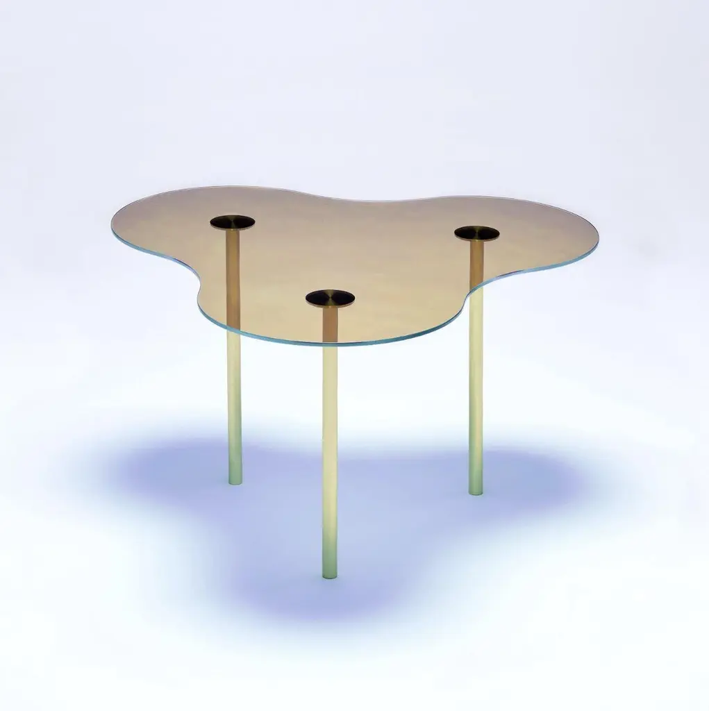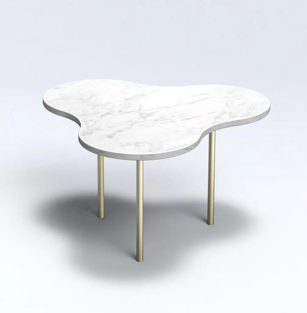 Black marble "Camo" coffee table - Sebastian SchererDimensions: 30 H x 75 W x 80 D cmMaterials: Marble, solid brass (brushed)Different colors and sizes (35, 40 cm) are availableThe Camo tables are inspired by the camouflage pattern used to camouflage objects by blending graphic elements together. The three basic forms of the Camo tables "A, B and C" follow this principle. They are constructed from a constant circle radius and can thus be arranged arbitrarily with each other. The combination of the three materials glass, marble and brass in three heights allows different arrangements in which form and materiality merge into cloud-like formations.The NEO/CRAFT label was founded by the Berlin-based designer Sebastian Scherer after he won the Lexus Design Award 2014 for his Iris lamp (2013). The debut collection, which consisted of ten products, was first presented at the imm cologne in January 2015 in what Wallpaper Magazine described as “one of the most impressive debuts in 2015.” Exhibitions at trade fairs in Milan and London followed this same year. Since then, Sebastian Scherer has worked as a designer and creative director in equal measure. The collection consists of his designs, but these can also undergo further development in the future through the input of other designers. The central element in his developmental process is the continual search for new creative possibilities with classical materials such as aluminum, steel, glass and wood.