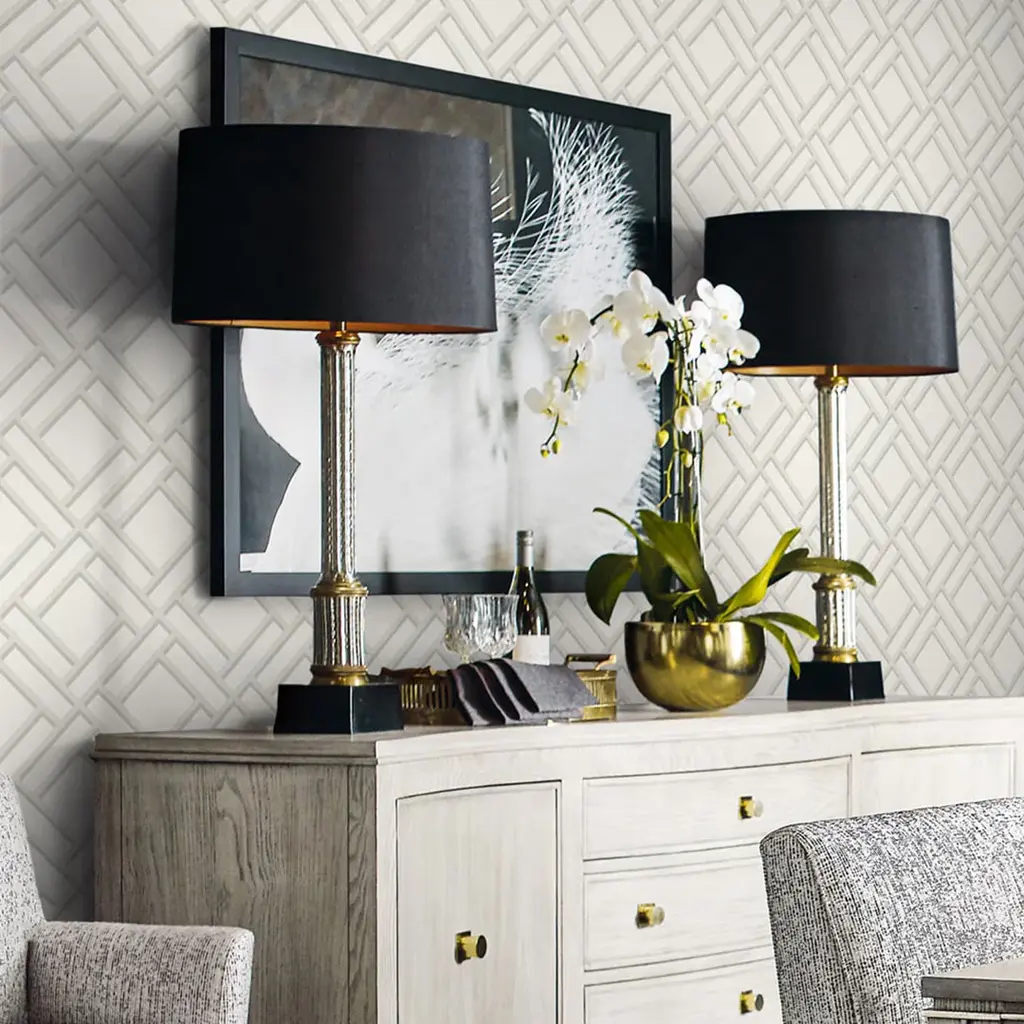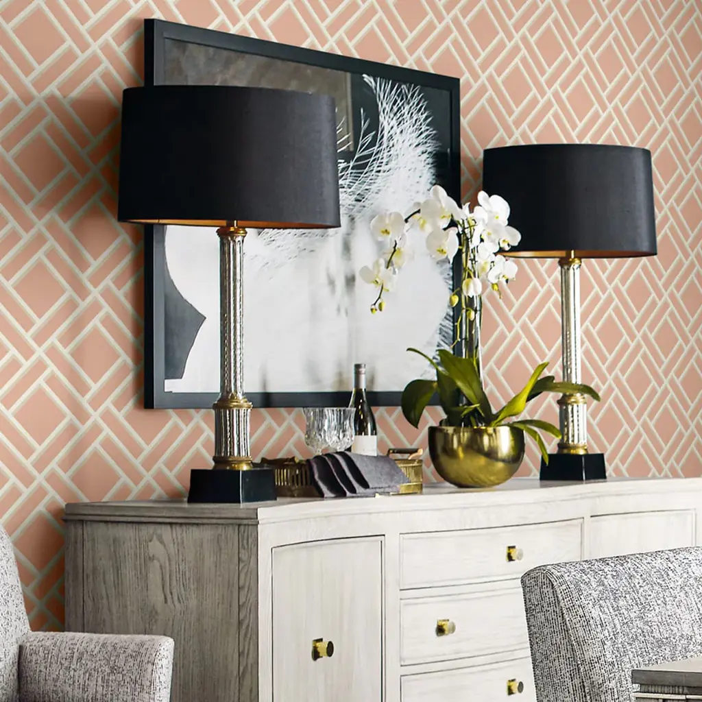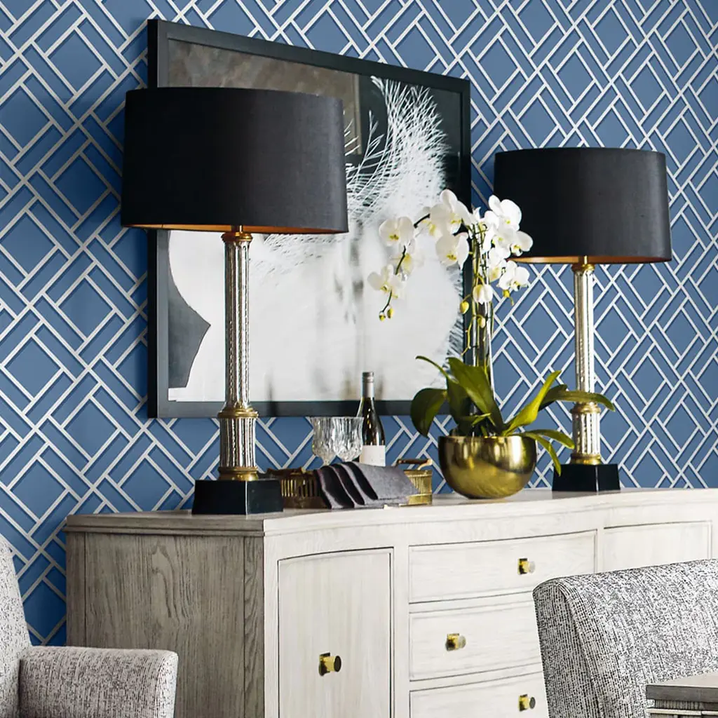 A graphic trellis design is screen-printed across a solid backdrop to create this geometric wallpaper pattern by designer Lillian August.With drama and a mastery of storytelling, Lillian August has created an International lifestyle brand. Her premier collection embraces her love of color and pattern--from elegant archival chinoiserie patterns to clean edited forms, for an urban chic style. Her trademark looks blend periods and styles--to reflect her signature point of view. Lillian's mission is always tempered to the creation of compelling and livable rooms, which answer to today's love of home and fashion. Ships In 7-10 Business Days Ships In 7-10 Business Days Ships In 7-10 Business Days Ships In 7-10 Business Days Ships In 7-10 Business Days Ships In 7-10 Business Days Ships In 7-10 Business Days Ships In 7-10 Business Days Covers 60.53 sq. ft. per double roll Sold in double rolls Made in the USA Beautiful geometric design Please note that we cannot process requests larger than ten samples per client.Please make sure to purchase all of the wallpaper you need at one time. Because our wallpapers are printed in batches, if you purchase at different times we cannot guarantee the new rolls will match your previous rolls.This image is for illustrative purposes only. The colors shown are accurate within the constraints of lighting, photography, and the color accuracy of your screen.