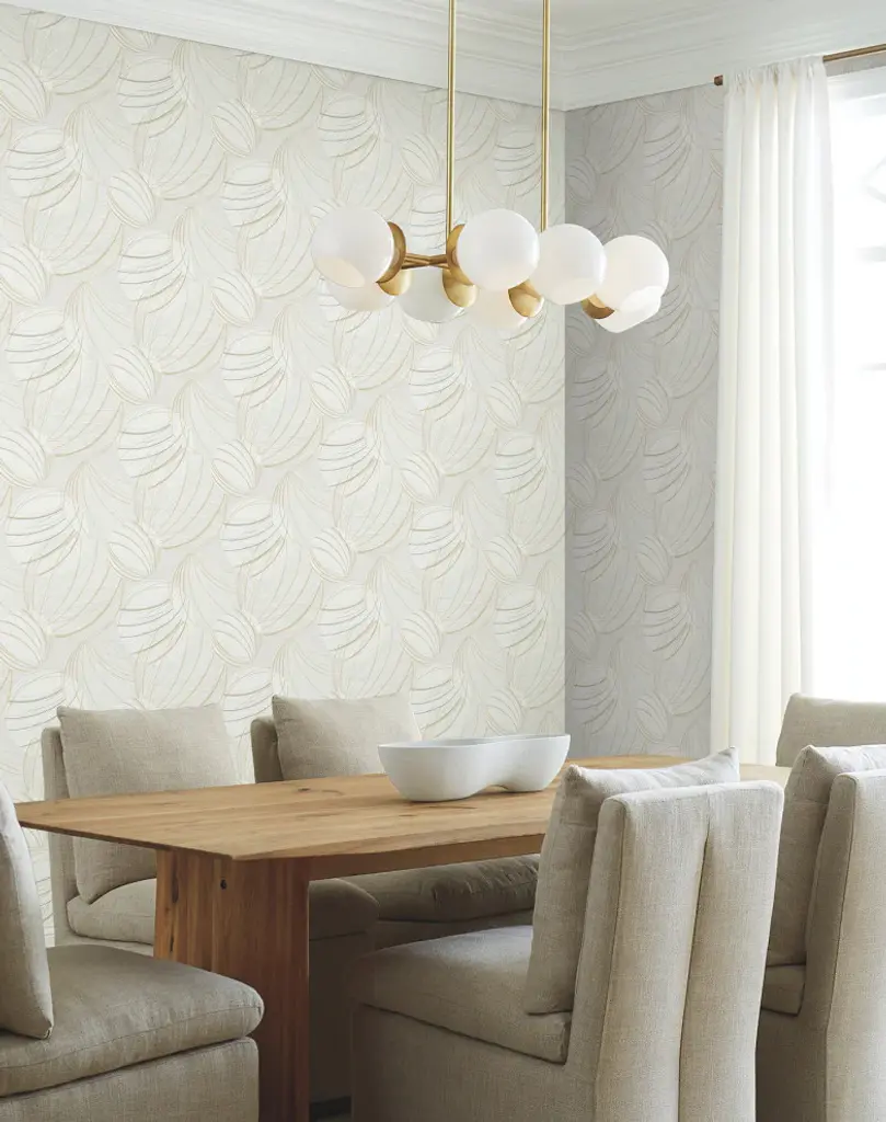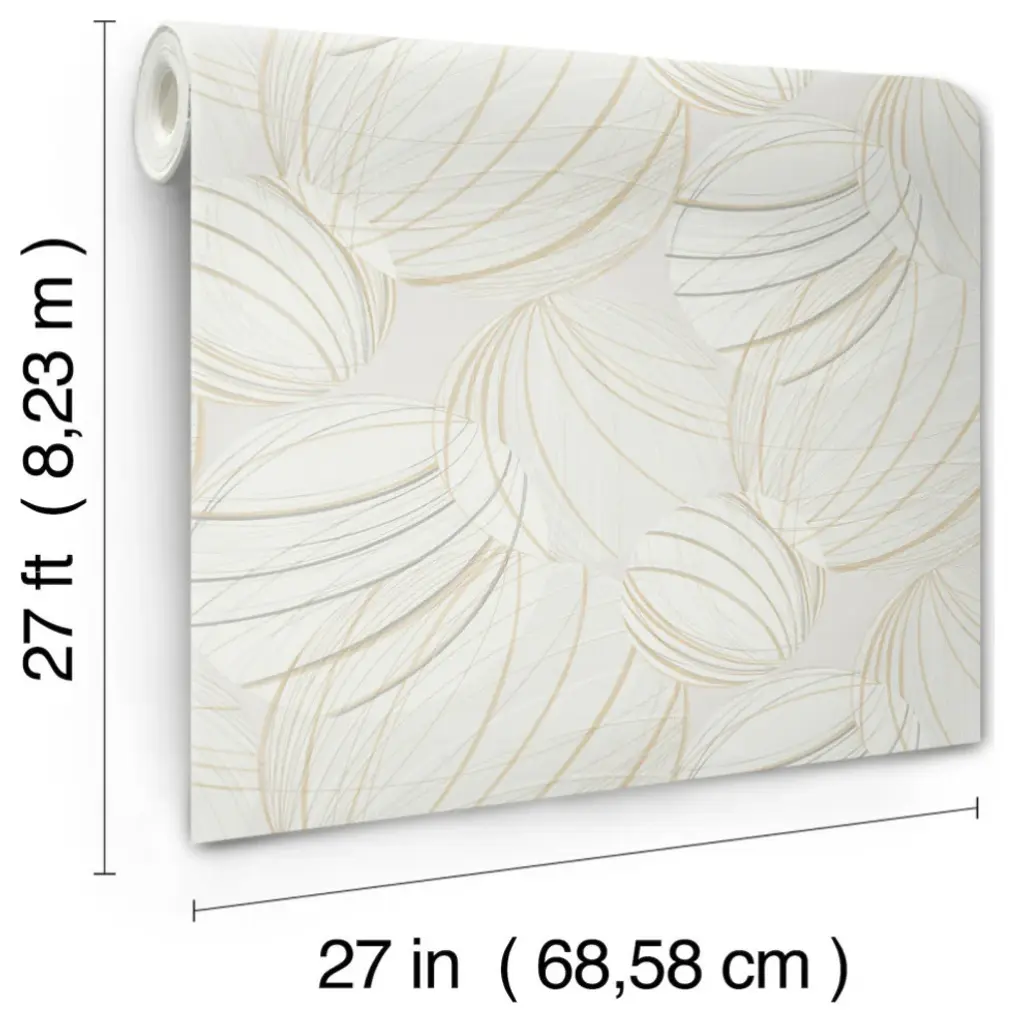 Orbs inspired by classic Asian and al fresco lighting provide Floating Lanterns with a fresh, airy feel accentuated by a blend of cream, taupe, and pale grey hues. This Floating Lanterns Wallpaper measures approximately 27 inches wide by 27 feet long, measuring approximately 60.8 square feet per roll. Organic simplicity and lustrous adornment for the modern home. Unpasted non woven material20.5-in repeat, straight matchWashable and strippable27-in by 27-ft long rollCovers about 60.8 square feet