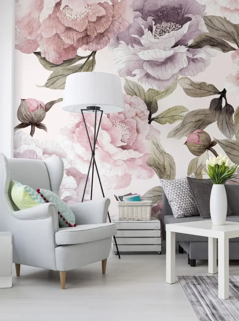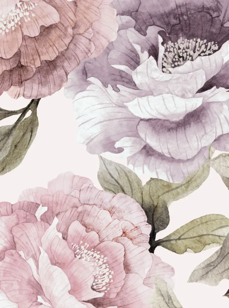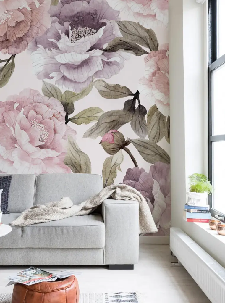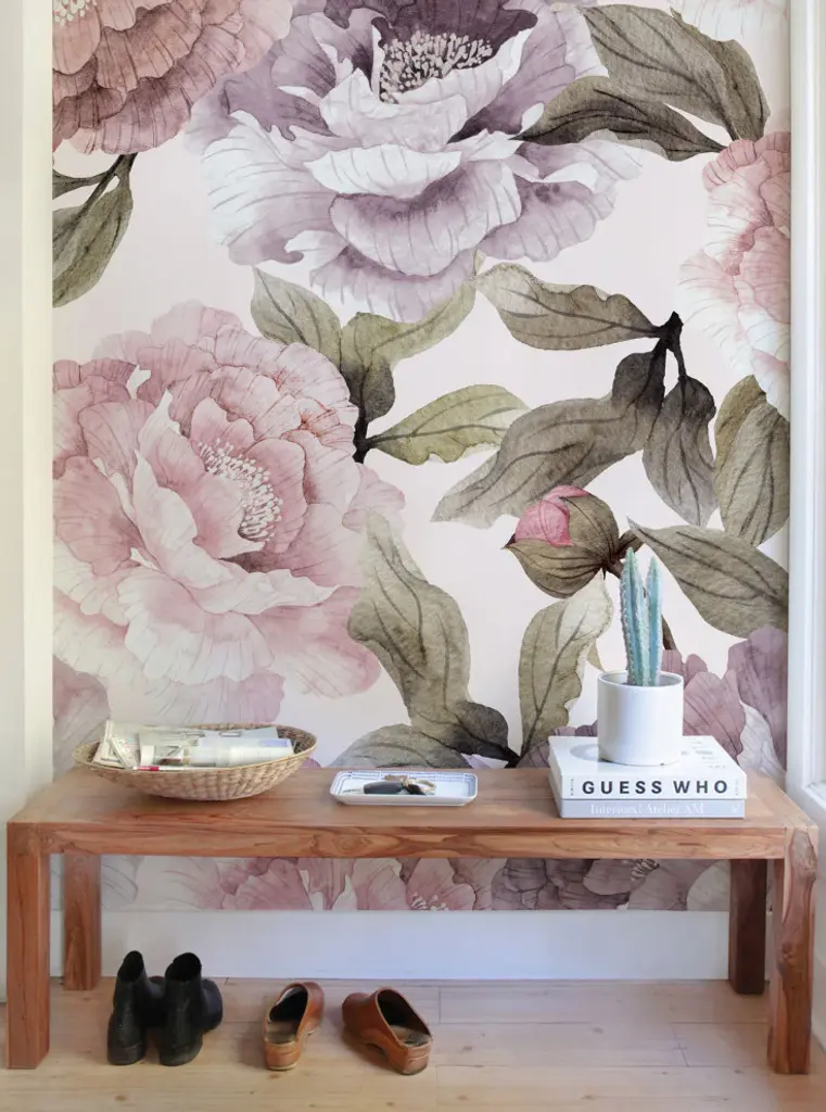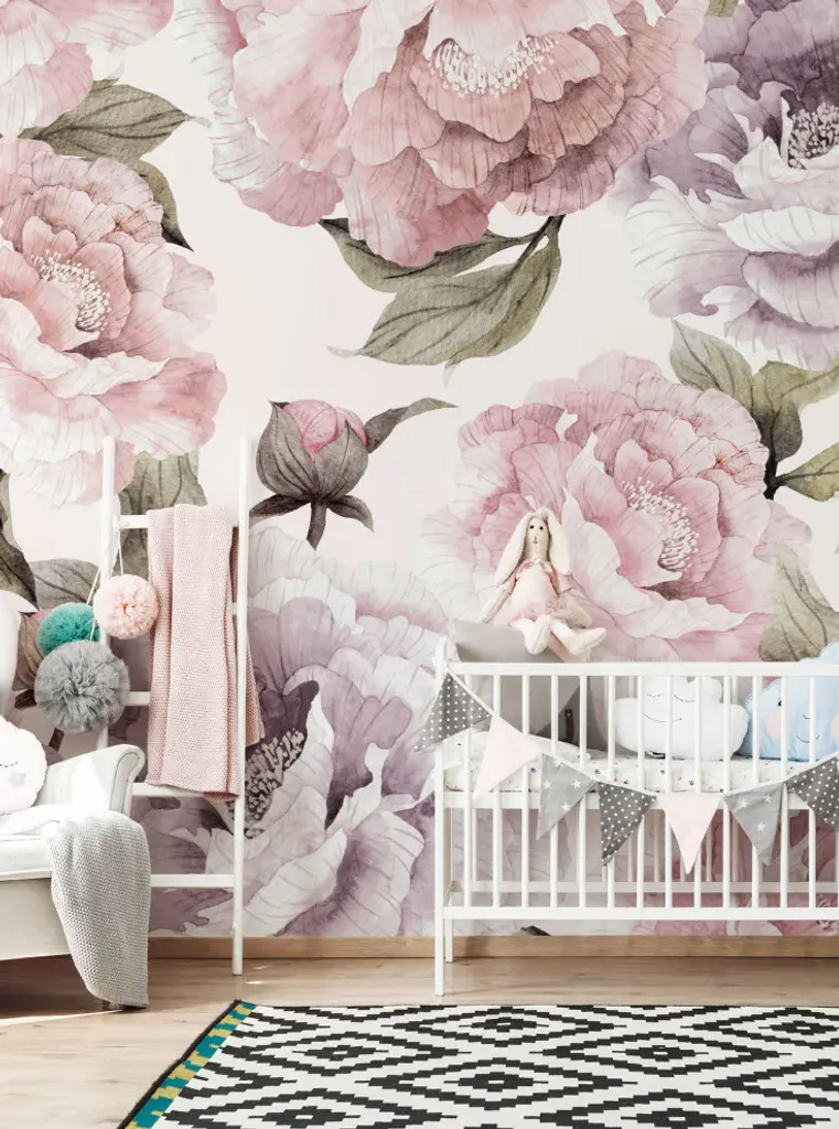 Bloom Flower Mural Wall Art Peel And Stick Vinyl Wallpaper, Pink Purple, 24"�w X 96"�h