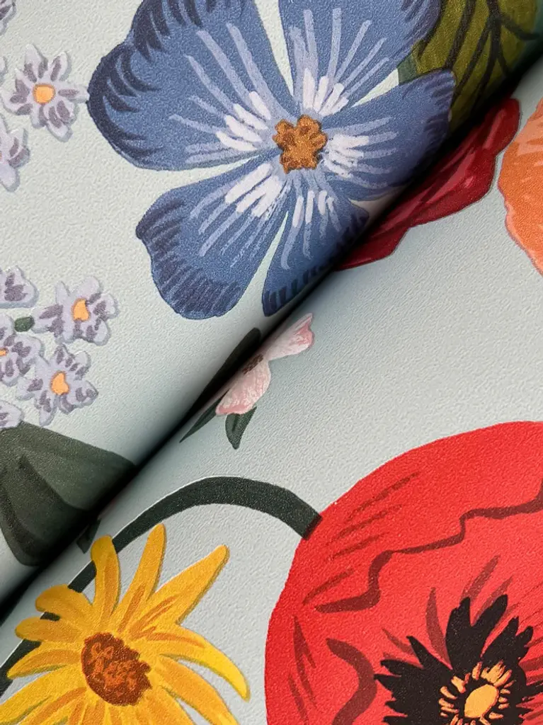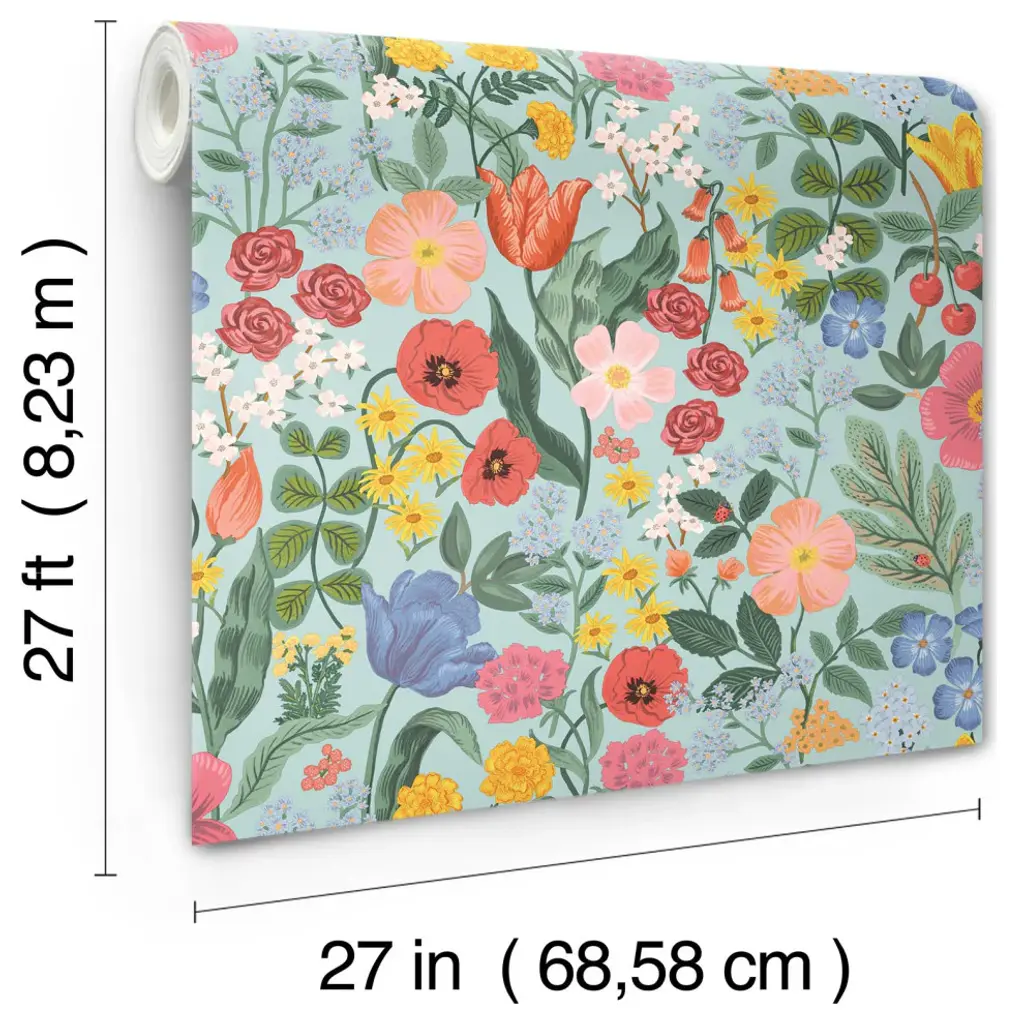 The most lively of gardens, Blossom features a medley of beautiful blooms and fruits that have attracted ladybug visitors. The flora is inked in rainbow hues that are softly offset by a cream backdrop. This Blossom Wallpaper measures approximately 27 inches wide by 27 feet long, measuring approximately 60.8 square feet per roll. The world of Rifle Paper Co. is in full bloom with their third wallpaper collection. With statement floral prints, detailed illustrated designs, and metallic accents, this collection is designed to bring beauty to every room. Unpasted non woven material; 24-in repeat, drop match; Washable and strippable; 27-in by 27-ft long roll; Covers about 60.8 square feet