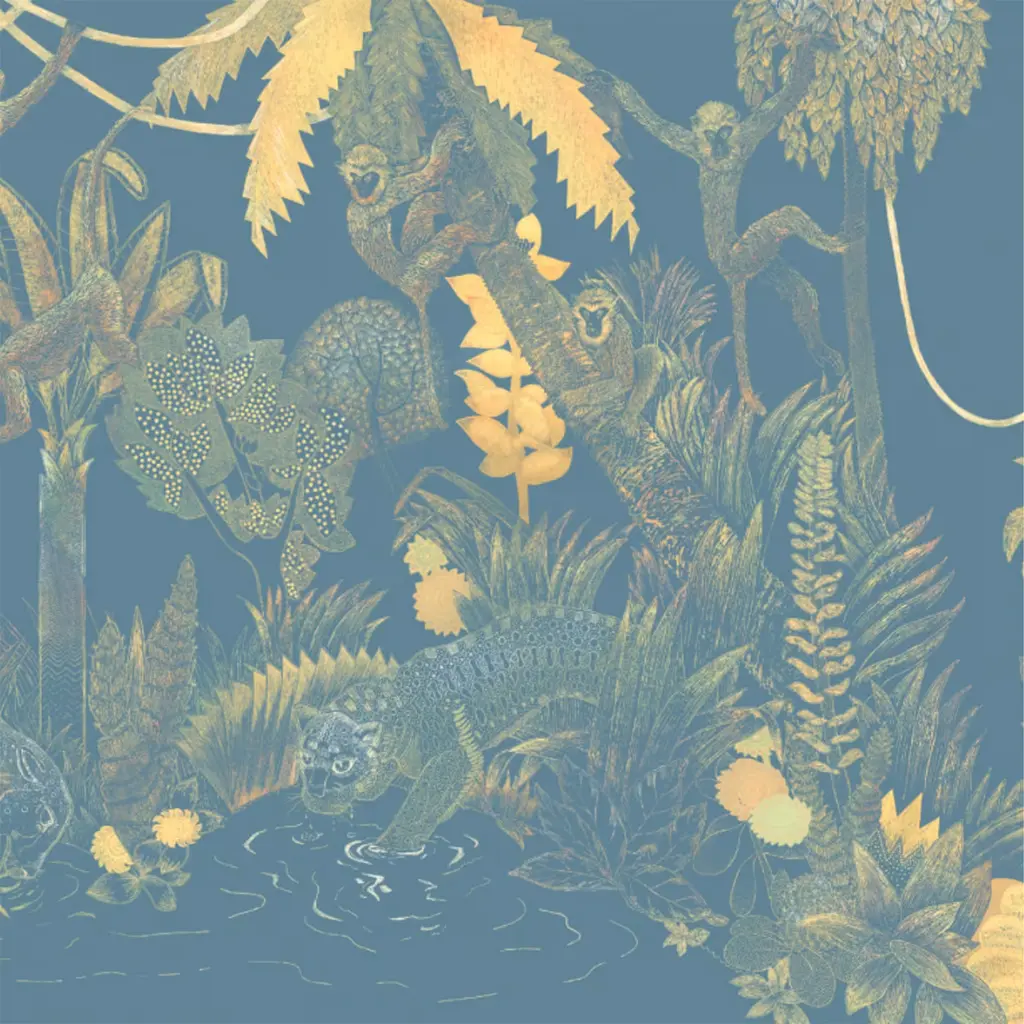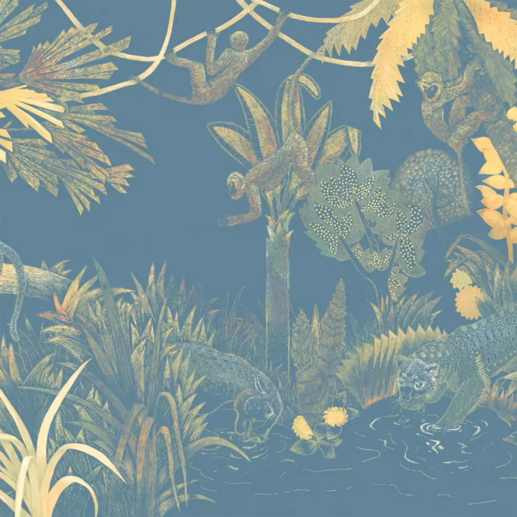 Blue & Yellow Jungle Lounge Polyester Wallcovering Fabric