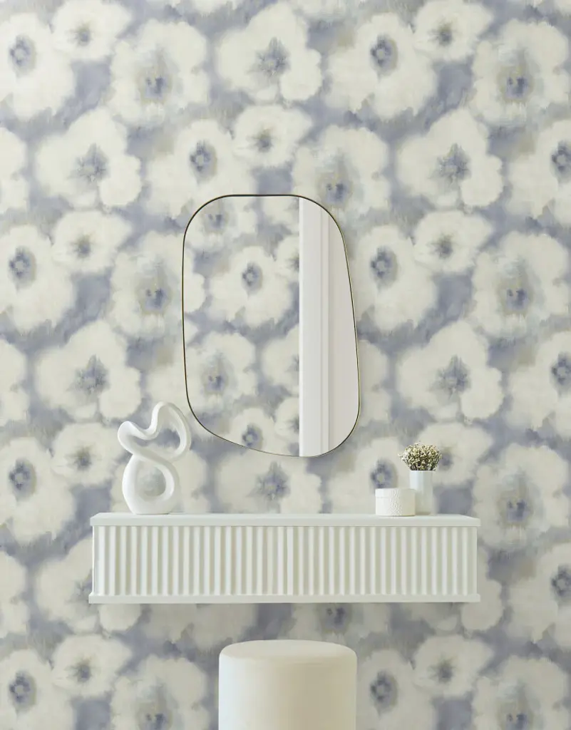 Blended Floral''s oversized blooms are created with diffused shades of blue, aqua, and golden taupe as they spread across a linen canvas. This Blended Floral Wallpaper measures approximately 20.5 inches wide by 33 feet long, measuring approximately 56.4 square feet per roll. Organic simplicity and lustrous adornment for the modern home. Unpasted non woven material24-in repeat, drop matchWashable and strippable20.5-in by 33-ft long rollCovers about 56.4 square feet