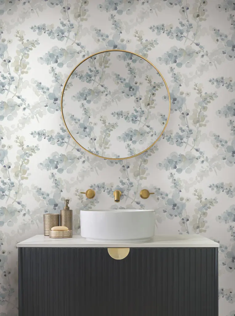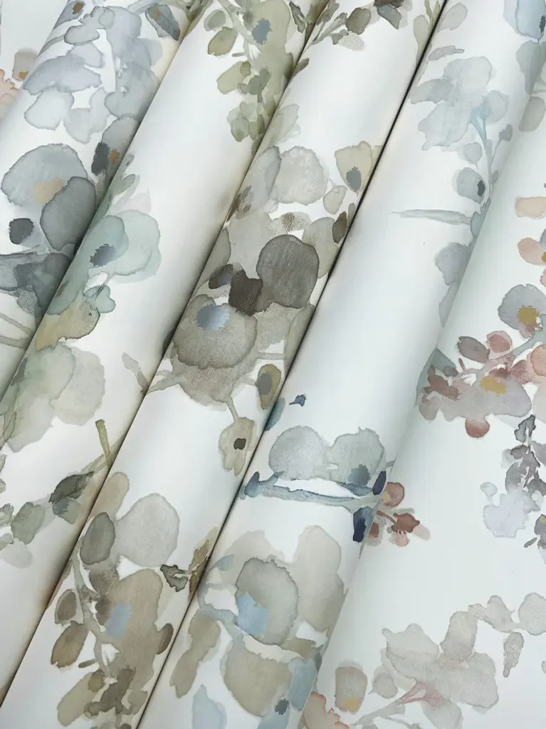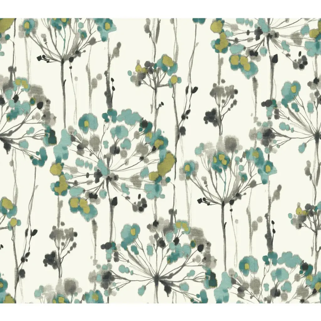Stems of frothy blue, moss, and pale grey watercolor petals accented with metallic silver make Blossom Fling a vivacious classic with fresh perspective. This Blossom Fling Wallpaper measures approximately 27 inches wide by 27 feet long, measuring approximately 60.8 square feet per roll. Organic simplicity and lustrous adornment for the modern home. Unpasted non woven material24-in repeat, straight matchWashable and strippable27-in by 27-ft long rollCovers about 60.8 square feet