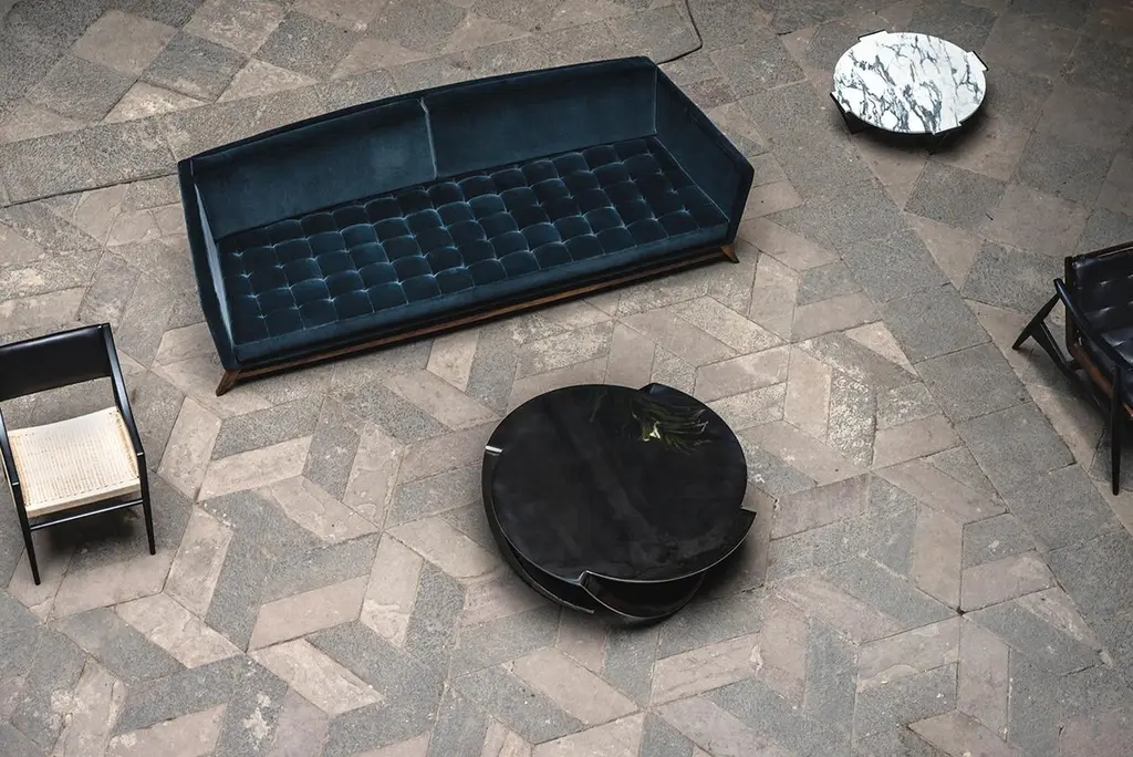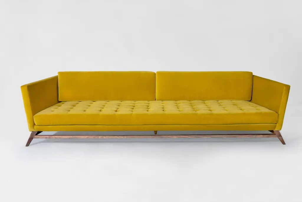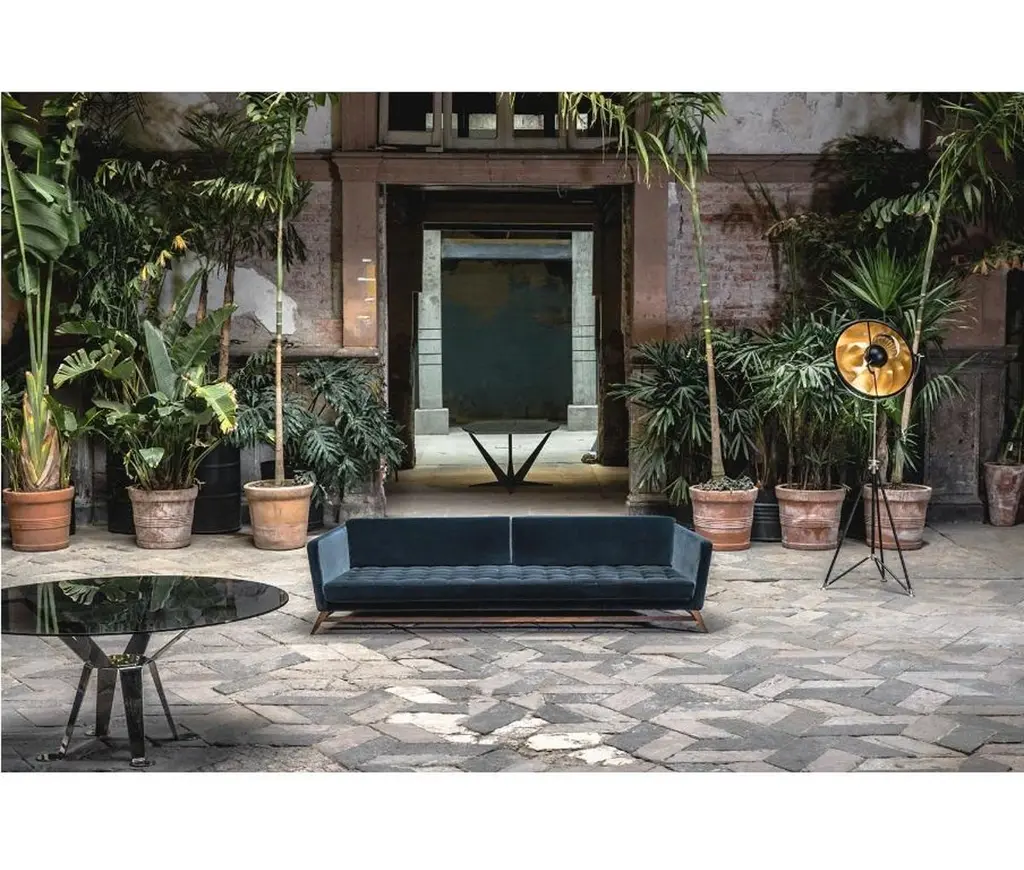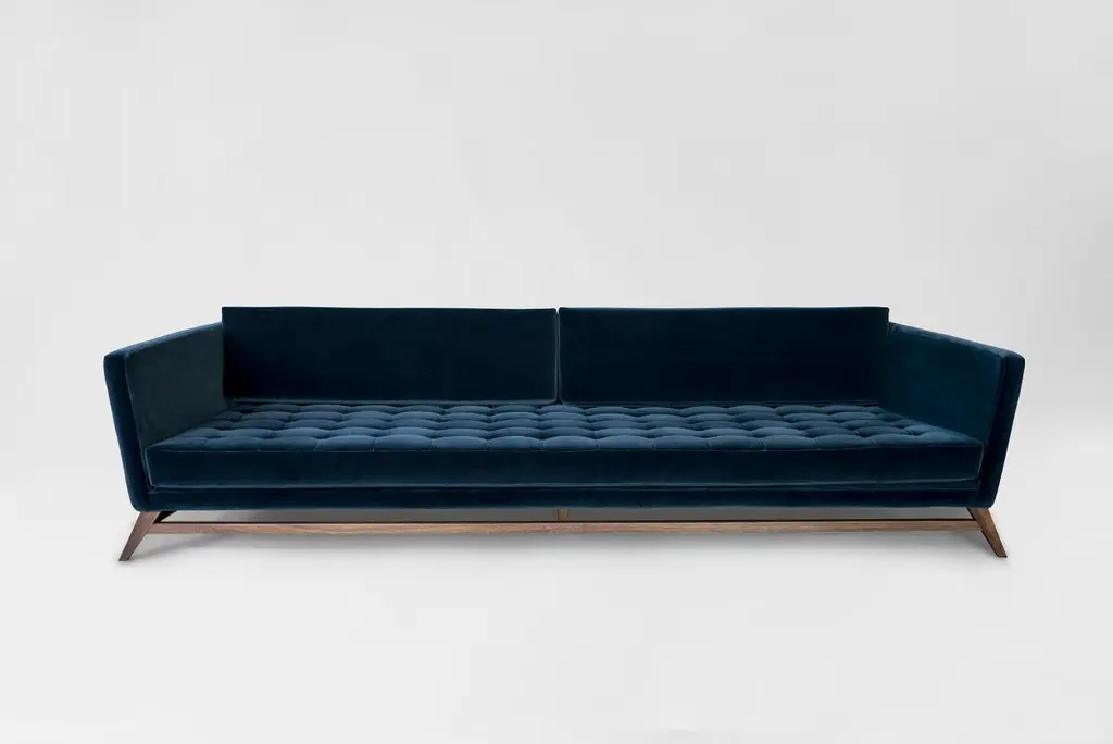 Blue Eclipse sofa by Atra Design.Dimensions: D 220 x W 108.8 x H 79 cm.Materials: fabric, walnut wood.Available in other colors.Atra DesignWe are Atra, a furniture brand produced by Atra form a mexico city–based high end production facility that also houses our founder Alexander Díaz Andersson's architecture and design studio.We are inspired by the future, informed by past centuries of woodworking traditions and are designing for the present and many years to come.Our designs are driven by what excites our senses and challenges our creativity, not about the latest trends or the diktat of marketing.We design with a passion for modernism and futurism and our discerning clientele comes to us for our rigorous sense of quality, comfort and uniqueness. atra's style effortlessly demonstrates our carpenter's artistry .Alexander Díaz AnderssonAtra founder Alexander Díaz Andersson was raised in Sweden, studied in Spain before moving to the Yucatán peninsula, where he first started experimenting with furniture. Now located in Mexico City, Díaz Andersson’s furniture, sculptures, interiors, and hospitality projects are defined by a studied balance of chaos and structure, fluidity and function. trained in industrial design, Díaz Andersson combines academic learning with knowledge passed down from experienced artist mentors and the energy of autodidactic exploration. his practice is both intuitive and informed by an understanding of history, process, and materials. Above all, Díaz Andersson’s guiding principle is pleasure. Alexander Díaz Andersson has been featured in Wallpaper Magazine, Architectural Digest, GG, Surface, and Vogue to name a few.
