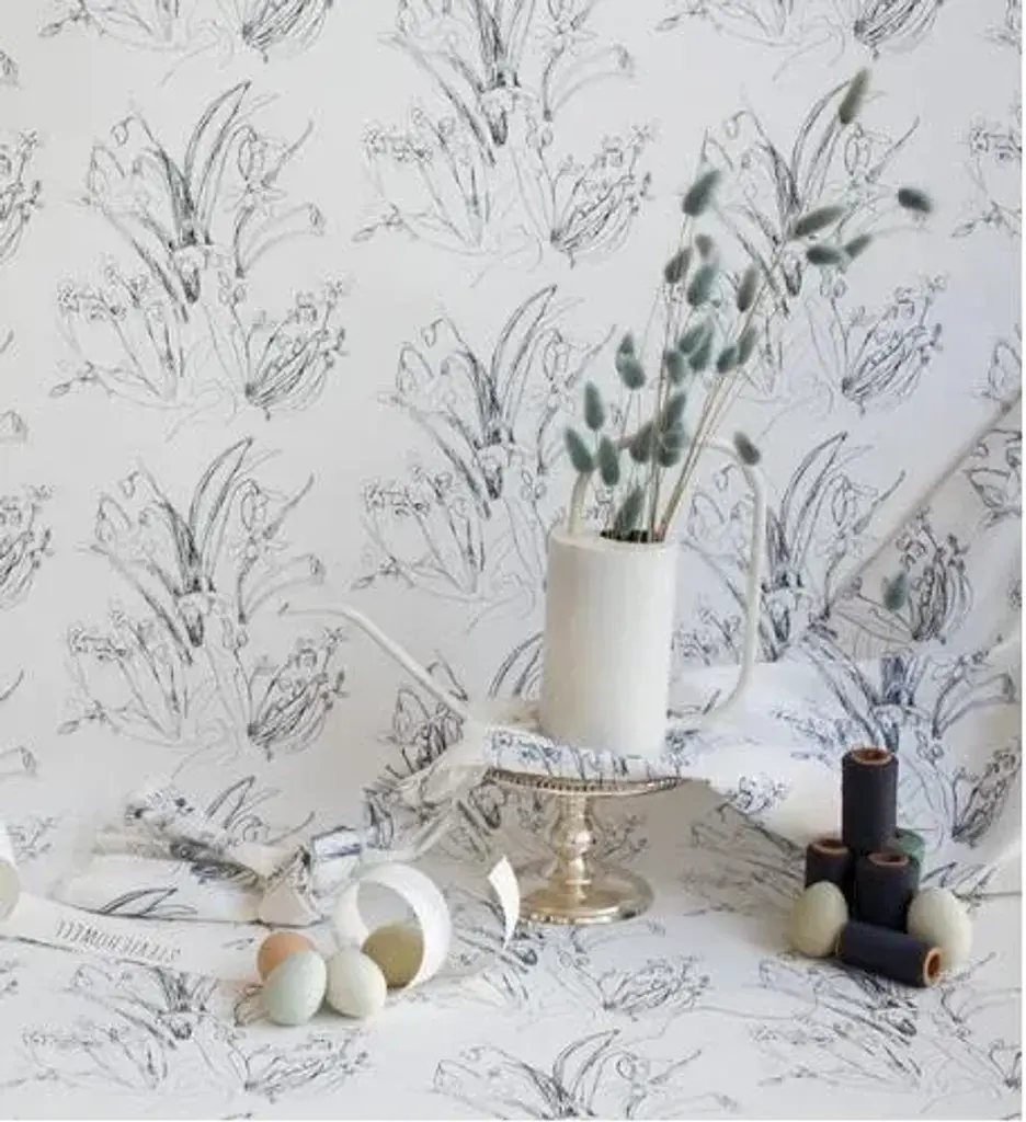 Stevie Howell Blueprint Flower black & white wallpaper is digitally printed with water-based inks on eco-friendly, clay-coated papers. In partnership with One Tree Planted, each wallpaper purchase supports reforestation efforts with a one-for-one business model. For each yard of wallpaper sold, we plant one tree to help clean our air and water, provide homes for wildlife, and contribute to our health and livelihoods. 1 yard of wallpaper = earth-friendly magic! Vertical repeat: 10.68" 54" wide trimmed paper (comes 60" untrimmed) Swatches are 8" x 10" 10 yard minimum 6 week production time Made in the USA Please note: All of our wallpaper is printed to order with a 4-6 week lead time, and we have a 10 yard minimum.