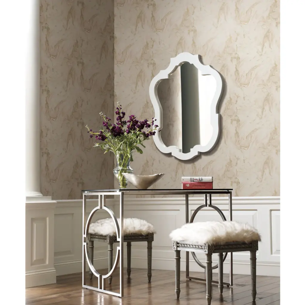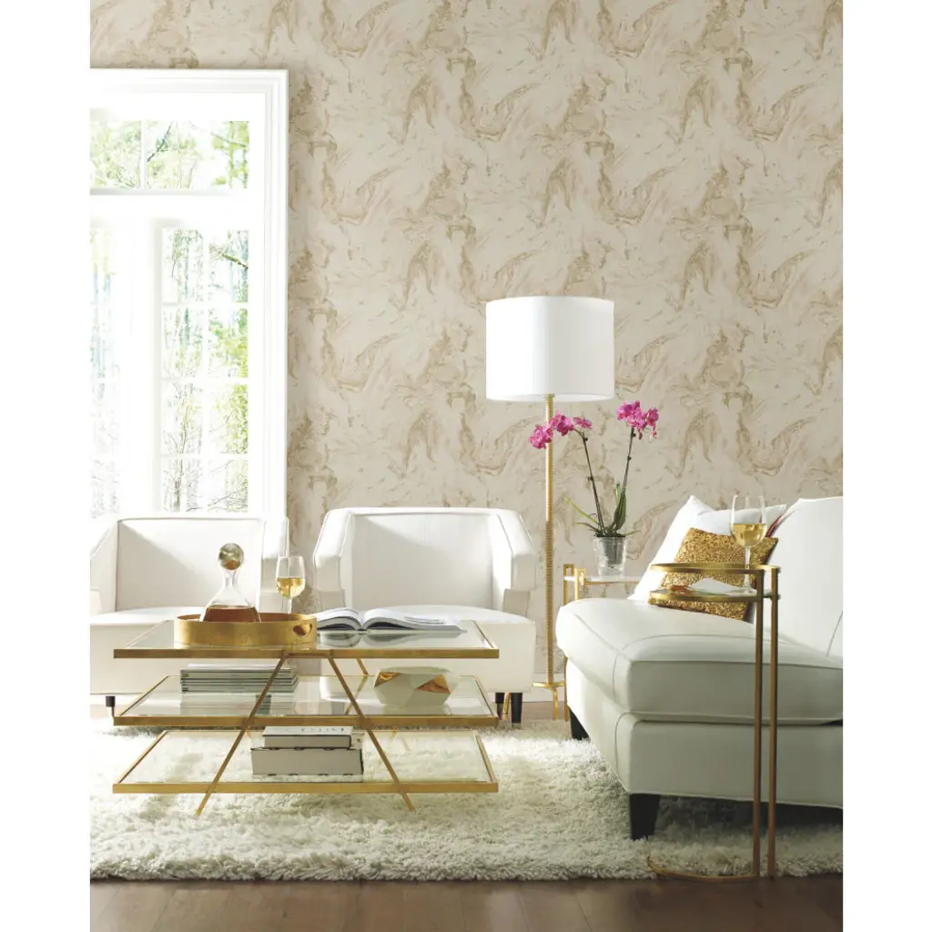 Resembling precious metals, add luxury wallcoverings into your space with Oil and Marble Wallpaper by Antonina Vella. This Oil & Marble Wallpaper measures approximately 21 inches wide by 33 feet long, covering About 57.8 square feet per roll. Durable and easy to remove from primed walls, this friendly to hang unpasted nonwoven wallpaper is created with a special blend of synthetic fibers, making it both easy to hang and tear resistant. Unpasted vinyl/mylar material; 25.2-in repeat, drop match; Washable and strippable; 21-in by 33-ft long roll; Covers about 57.8 square feet