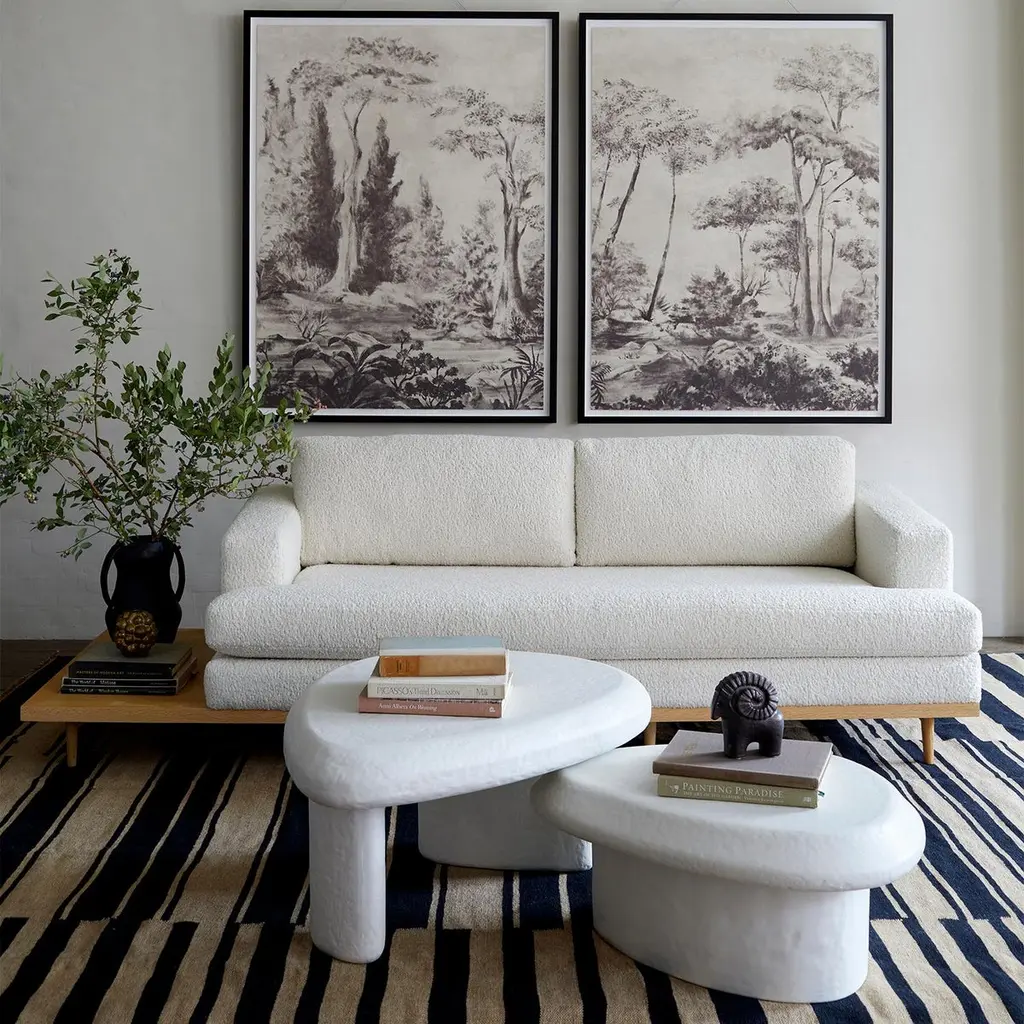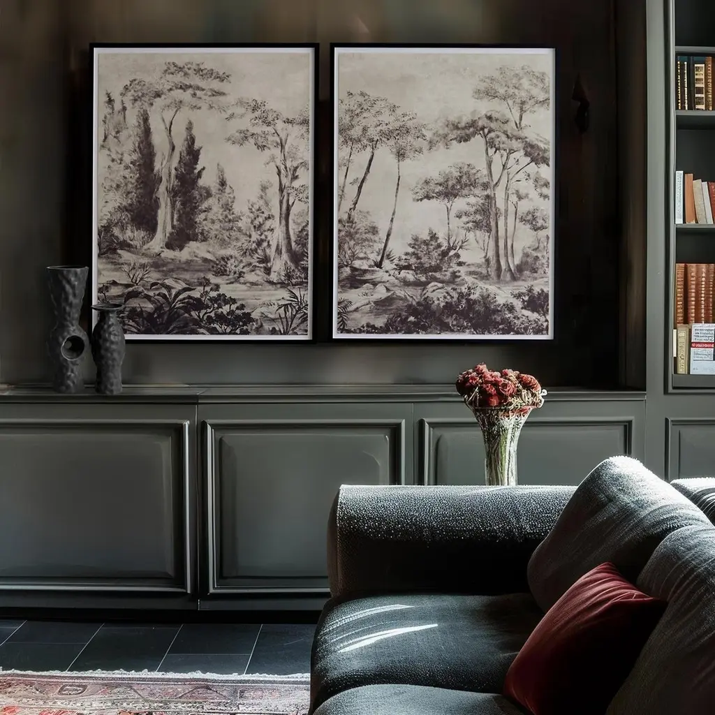 The launch of the newest diptych print titled "Bois de Boulogne" is part of our mission for the preservation and celebration of historical French artistry. Designed in the style of a classic French panorama, known as "Papier Peint," these exquisite prints capture the lush and detailed expanse of the Bois de Boulogne park, a beloved Parisian landscape. Each panel is a meticulous amalgamation of past and present art techniques, featuring elaborate woodland scenes that blend seamlessly across the two sections. The archival quality and limited edition of the prints ensure that the gorgeous tones and intricate details are preserved, offering an enduring glimpse into France's artistic heritage. This release not only pays homage to traditional French scenic wallpaper but also revitalizes it for contemporary appreciation. Left and Right prints sold separately. There will only be 100 prints released in each size of this diptych series. Left and Right prints sold separately. This listing is for the art on the right. Available in 2 sizes, this listing is for the LARGE SIZE.Large: 42" x 56" / Medium: 30" x 40"Item will ship unframed rolled in a tube. Please reach out to us if you need larger sizes or are located in the NYC area and interested in having it framed prior to delivery.