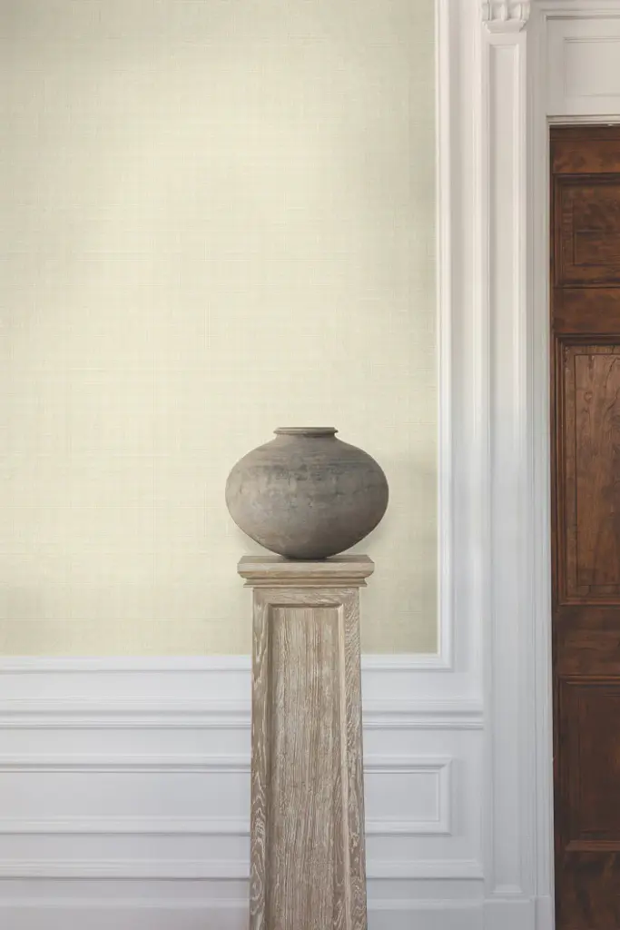 A lofted texture gives the impression of delicate woven threads in the luminous pattern Bordeaux, shown here in matte ivory. This Bordeaux Wallpaper measures approximately 27 inches wide by 27 feet long, measuring approximately 60.8 square feet per roll. The distinction of timeless style. Unpasted non woven material. 25.25-in repeat, straight match. Washable and strippable. 27-in by 27-ft long roll. Covers about 60.8 square feet