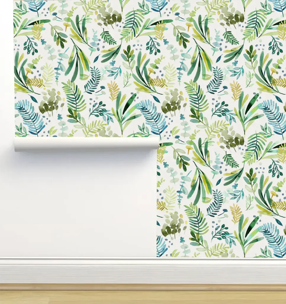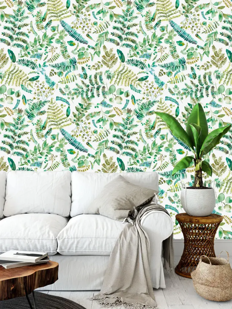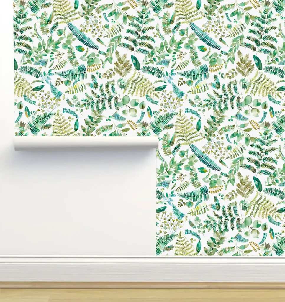Botanical Leaves Plants Ferns Wallpaper, 24"x144"