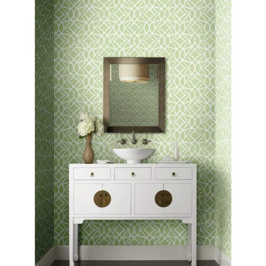 Timeless motifs combine with sophisticated color to create the playful, casual pattern mix of heritage and modern found in Grandmillennial. Manufactured on Sure Strip�, a unique high performance substrate, this ultra-easy removable wallpaper is guaranteed easy to install and easy to remove; simply use water to activate. Pattern Boxwood Garden creates pathways through small watercolor leaves to form a modern lattice. Includes 1 roll - 27 in x 27 ft = 60.75 sq ft with a straight match and 24 in repeat.