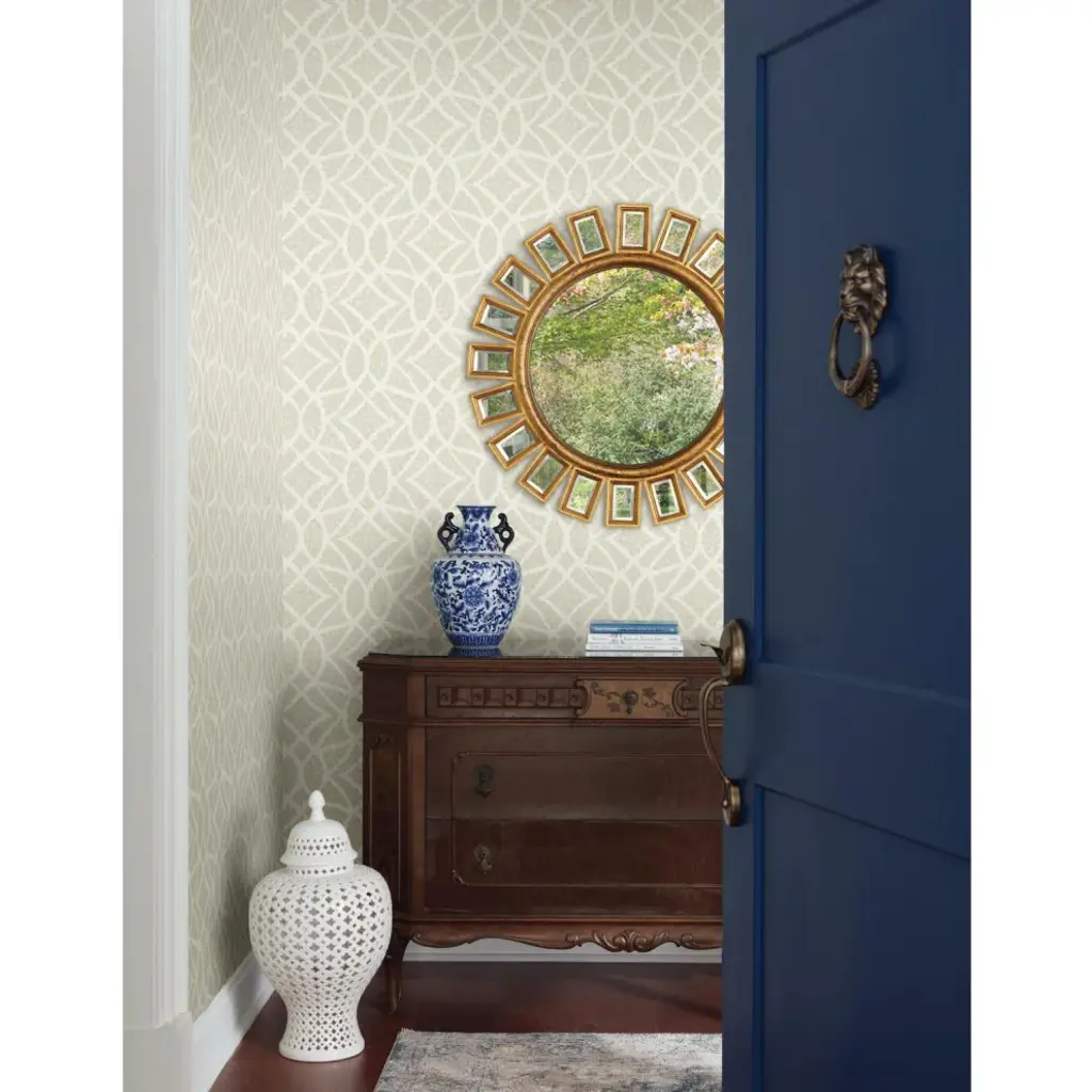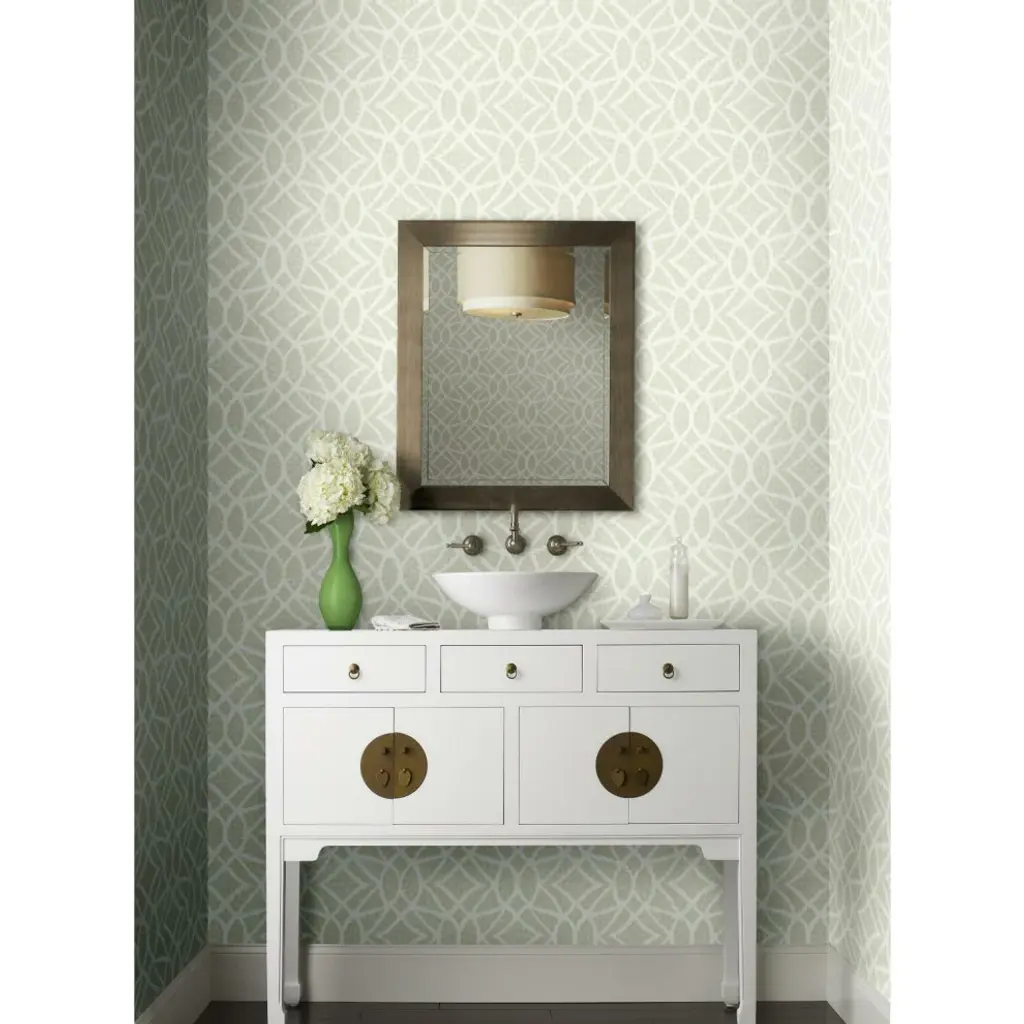 Timeless motifs combine with sophisticated color to create the playful, casual pattern mix of heritage and modern found in Grandmillennial. Manufactured on Sure Strip�, a unique high performance substrate, this ultra-easy removable wallpaper is guaranteed easy to install and easy to remove; simply use water to activate. Pattern Boxwood Garden creates pathways through small watercolor leaves to form a modern lattice. Includes 1 roll - 27 in x 27 ft = 60.75 sq ft with a straight match and 24 in repeat.
