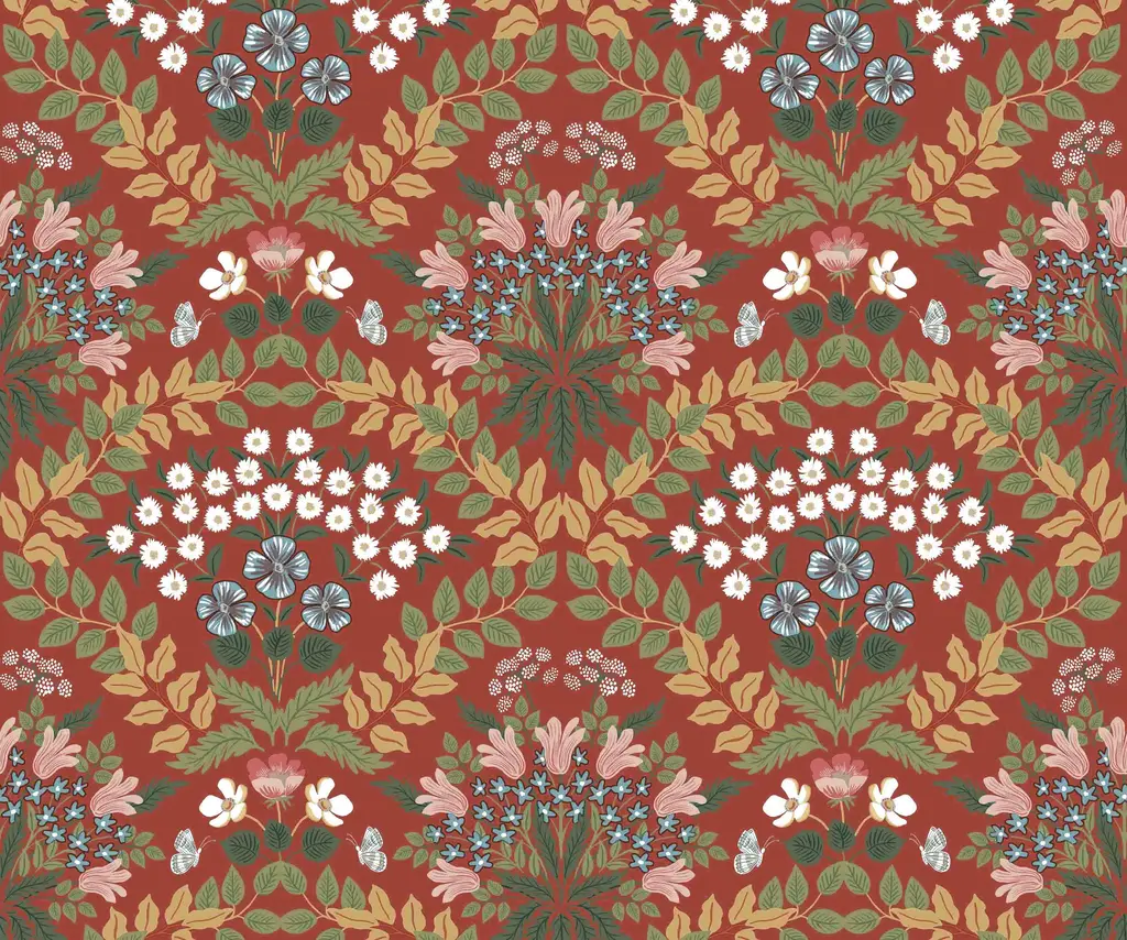 Inspired by organic, abstract floral motifs of Art Nouveau textile designs, Bramble is a detailed print that incorporates iconic Rifle Paper Co. floral elements into a mirrored design. This wallpaper is screen printed and comes in 27 inch rolls with a 25.25 inch repeat. Due to the printing process, there may be color variations in different print runs. We suggest purchasing all wallpaper needed for a project at one time for the best color consistency. Unopened rolls can be returned.