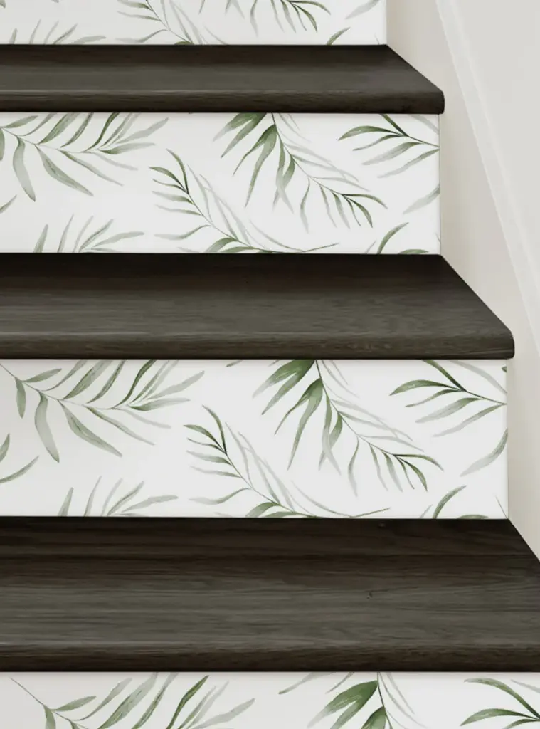 Float with each step you take on your staircase with our Breezy Palm Leaves Peel and Stick Stair Riser Strips! DIY decorating has never been easier with this repositionable vinyl that can be easily applied and removed without any stress or mess!This re-positionable wallpaper is designed and made in our studios in New Jersey. The designs are printed onto an adhesive-backed vinyl that can be removed, repositioned, and reused. The wallpaper does not leave residue on your walls and is ideal for DIY room makeovers without the mess and headaches of traditional wallpaper.Size:48"w x 6"h48"w x 6.5"h48"w x 7"h48"w x 7.5"h• This Pattern does not repeat