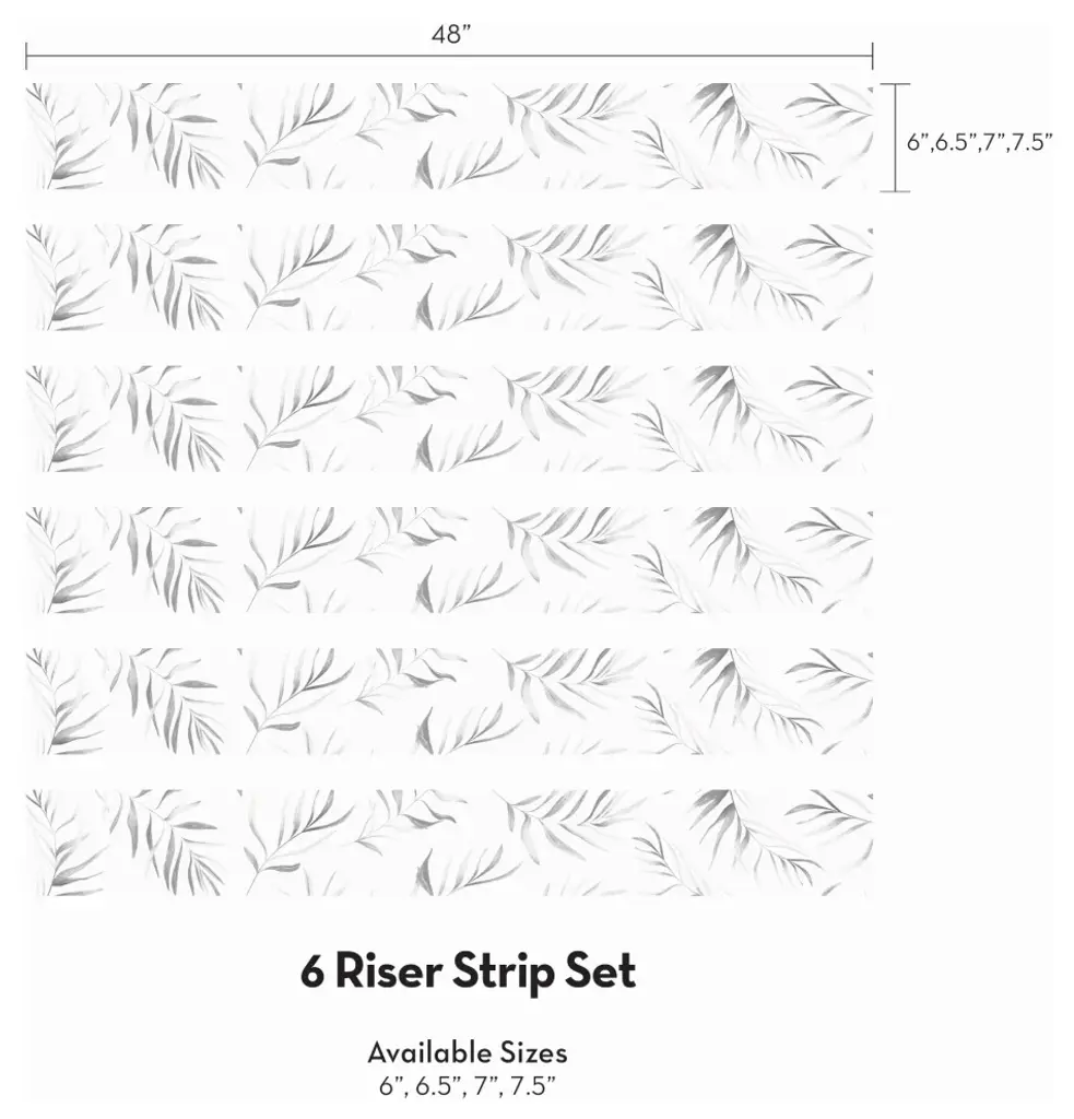 Float with each step you take on your staircase with our Breezy Palm Leaves Peel and Stick Stair Riser Strips! DIY decorating has never been easier with this repositionable vinyl that can be easily applied and removed without any stress or mess!This re-positionable wallpaper is designed and made in our studios in New Jersey. The designs are printed onto an adhesive-backed vinyl that can be removed, repositioned, and reused. The wallpaper does not leave residue on your walls and is ideal for DIY room makeovers without the mess and headaches of traditional wallpaper.Size:48"w x 6"h48"w x 6.5"h48"w x 7"h48"w x 7.5"h• This Pattern does not repeat