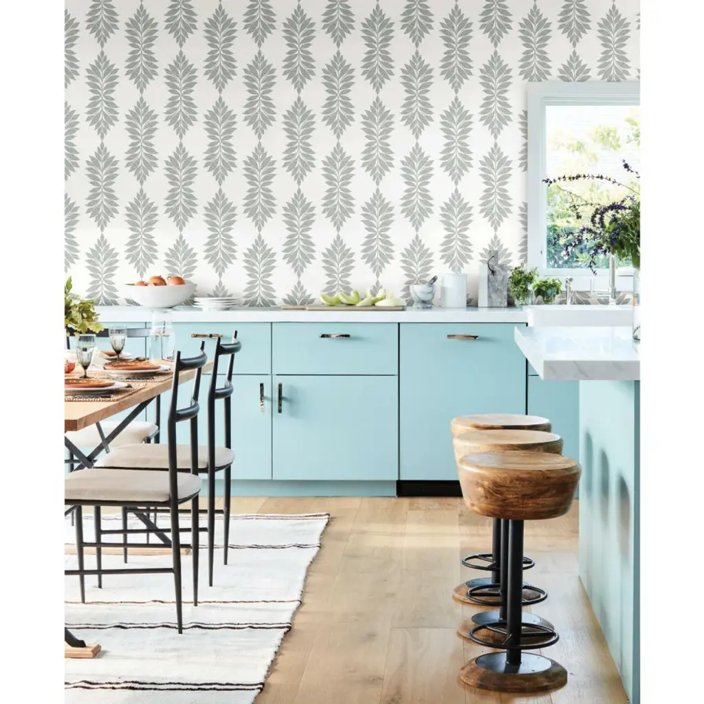 The allure of coastal-chic interiors beckons, with an easy elegance that speaks to the playful pace and casual luxury of living by the water�s edge. Manufactured on Sure Strip�, a unique high performance substrate, this ultra-easy removable wallpaper is guaranteed easy to install and easy to remove; simply use water to activate. Pattern Broadsands Botanica is a thoughtfully placed pattern of botanical leaves in a delicate medallion of greenery. Includes 1 roll - 20.5 in x 33 ft = 56 sq ft with a straight match and 60.96 cm repeat.