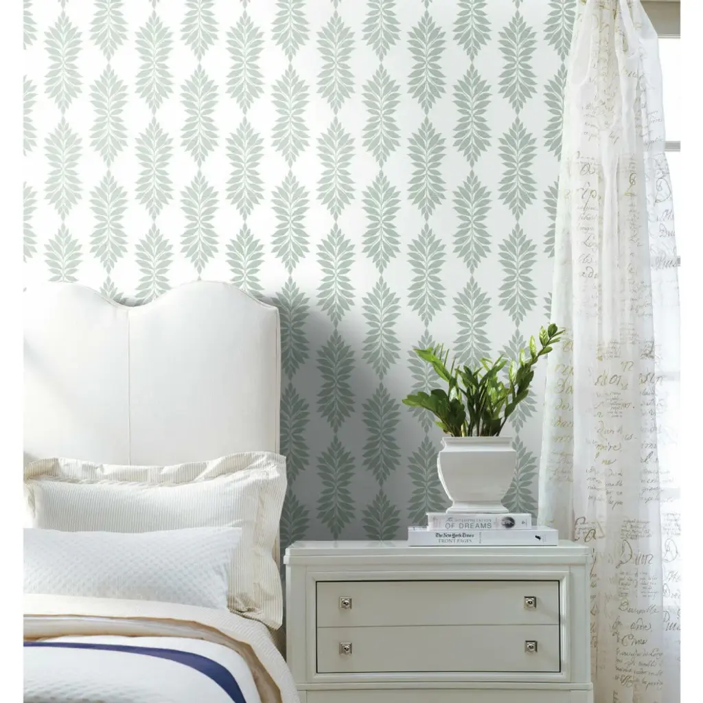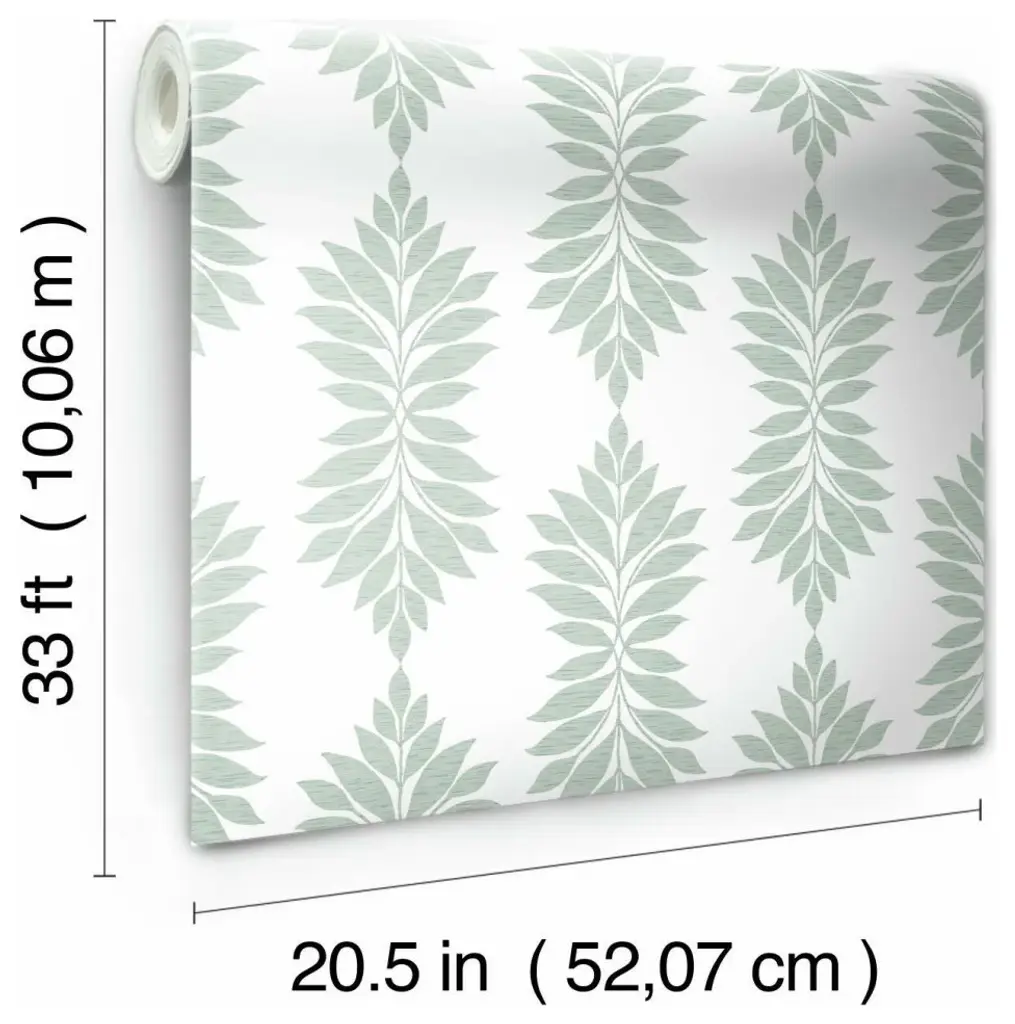 The allure of coastal-chic interiors beckons, with an easy elegance that speaks to the playful pace and casual luxury of living by the water�s edge. Manufactured on Sure Strip�, a unique high performance substrate, this ultra-easy removable wallpaper is guaranteed easy to install and easy to remove; simply use water to activate. Pattern Broadsands Botanica is a thoughtfully placed pattern of botanical leaves in a delicate medallion of greenery. Includes 1 roll - 20.5 in x 33 ft = 56 sq ft with a straight match and 60.96 cm repeat.