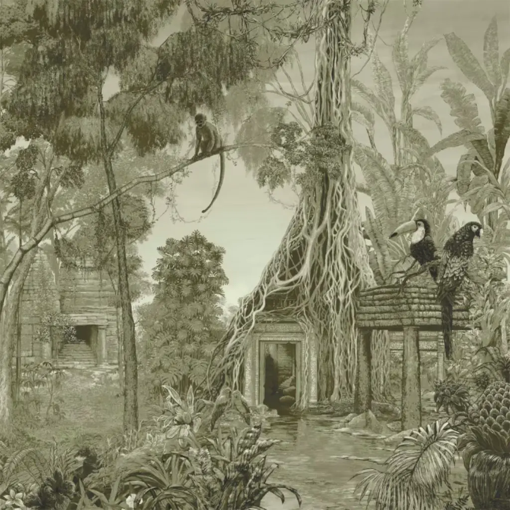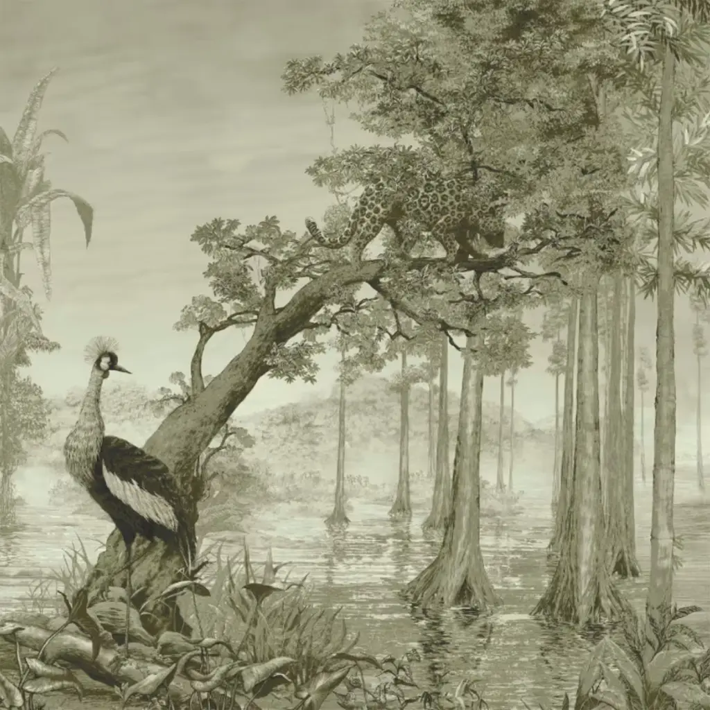 This exquisite wallcovering fabric captures the essence of an Edenic landscape, bringing an extraordinary ambiance to interiors. Featuring a design inspired by the timeless tradition of papiers peints, it artfully blends rich color palette and innovative digital printing technology. The fabric employs advanced techniques such as tempera, stamps, airbrush, and stencil, resulting in a stunning trompe l'oeil effect that enlivens spaces. Crafted for a seamless installation, it enhances the elegance of any wall while promoting breathability and sound absorption. The price is per square meter, allowing for tailored applications. It is also available in an alternative height of 270 cm. Please contact the Concierge for additional information.