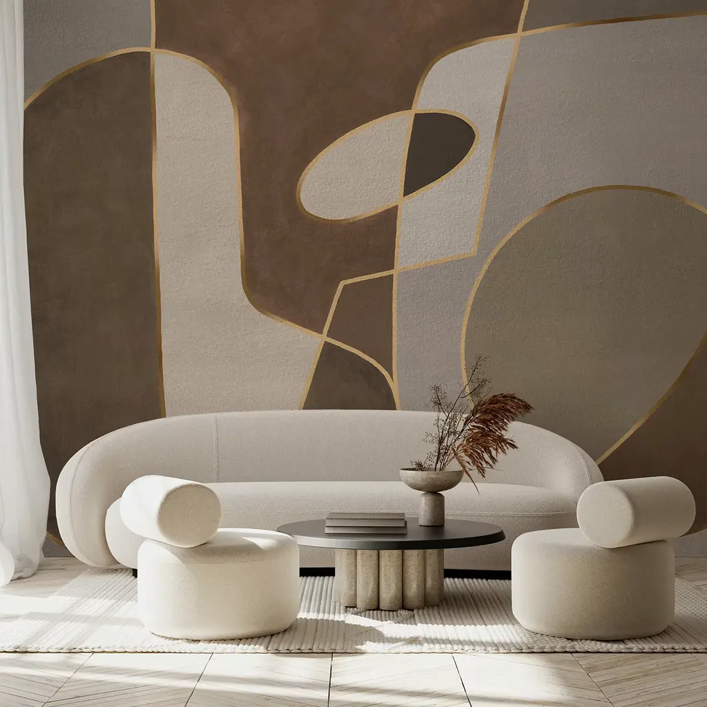 Brown Shapes On Shapes Textured Wallpaper