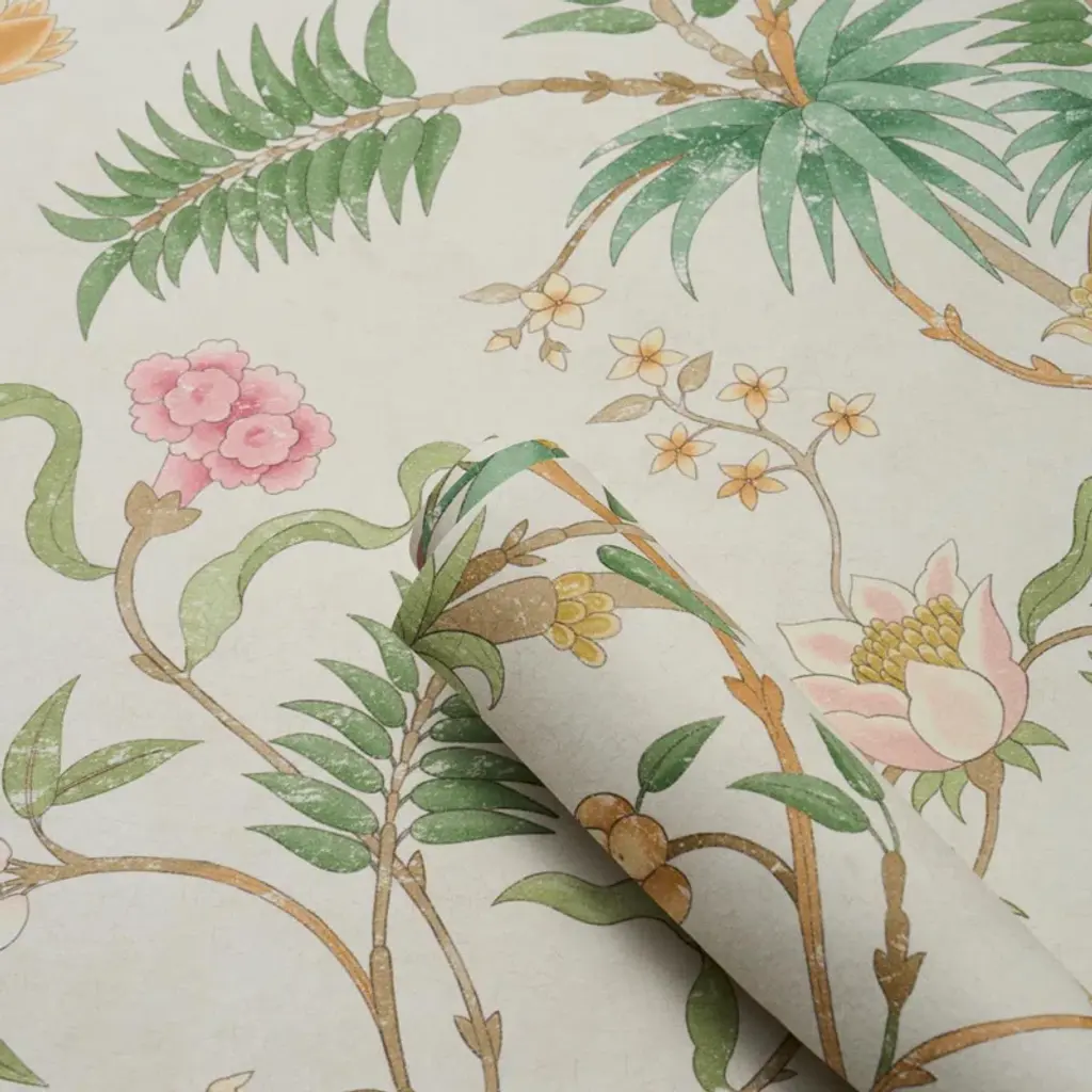 Brunschwig And Fils Bamboo Grove Handprinted Floral Wallpaper, Celadon Cream Usa
