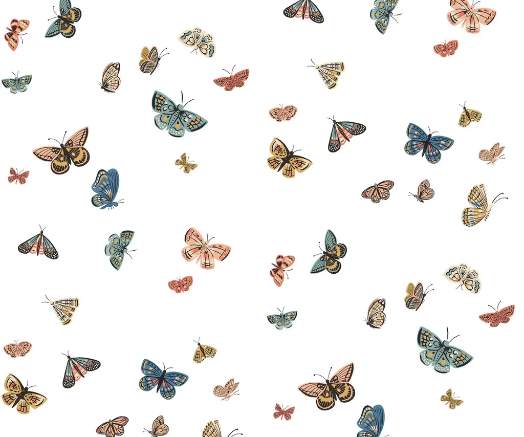 In three playful colorways, our Butterfly House wallpaper features a charming array of fluttering, hand-painted butterflies. This premium peel & stick version of our best-selling traditional wallpaper makes a beautiful, simple-to-install statement. It can be easily removed, making it perfect for rentals and accent walls. The paper is gravure and comes in 27 inch rolls with a 24 inch repeat. Due to the printing process, there may be color variations in different print runs. We suggest purchasing all wallpaper needed for a project at one time for the best color consistency. Unopened rolls can be returned.