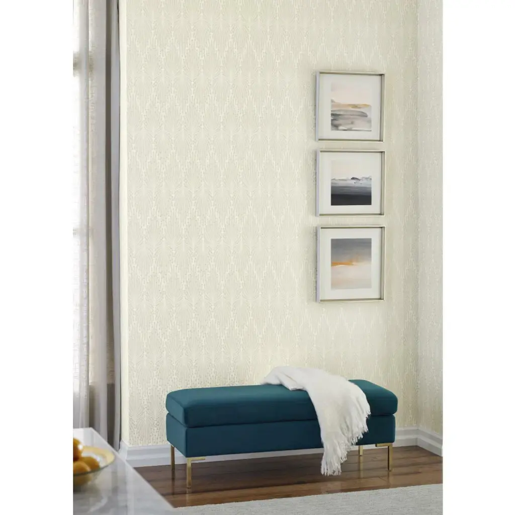 A touch of fantasy for the sophisticate, this pattern features a feathery motif, pointing upward or down, and incorporates metallic dots teathered with strings. This is Caf Society Wallpaper. This Caf Society Wallpaper measures approximately 27 inches wide by 27 feet long, covering About 60.8 square feet per roll. Durable and easy to remove from primed walls, this friendly to hang unpasted nonwoven wallpaper is created with a special blend of synthetic fibers, making it both easy to hang and tear resistant. Unpasted non woven material; 12.625-in repeat, straight match; Washable and strippable; 27-in by 27-ft long roll; Covers about 60.8 square feet