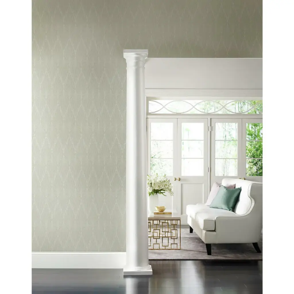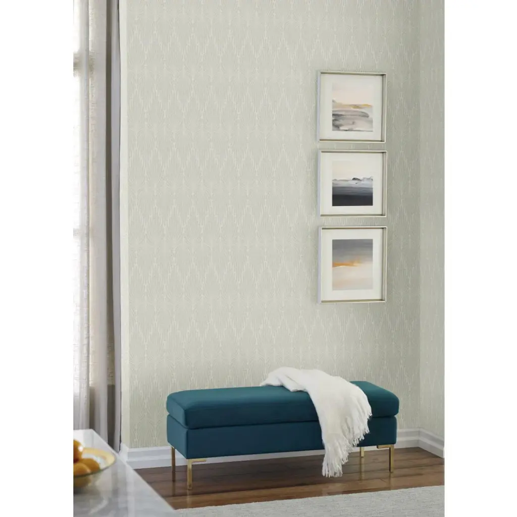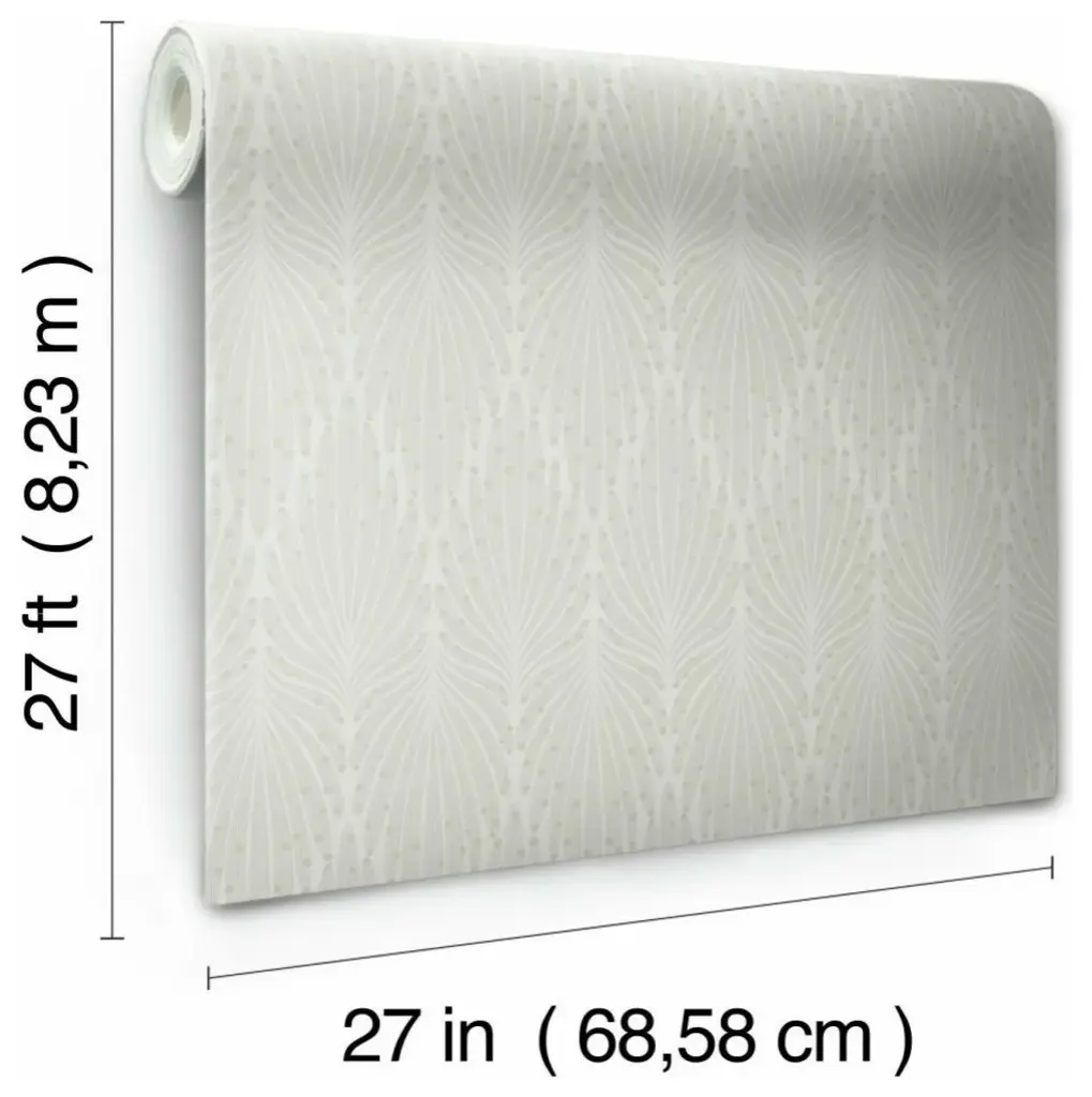 A touch of fantasy for the sophisticate, this pattern features a feathery motif, pointing upward or down, and incorporates metallic dots teathered with strings. This is Caf Society Wallpaper. This Caf Society Wallpaper measures approximately 27 inches wide by 27 feet long, covering About 60.8 square feet per roll. Durable and easy to remove from primed walls, this friendly to hang unpasted nonwoven wallpaper is created with a special blend of synthetic fibers, making it both easy to hang and tear resistant. Unpasted non woven material; 12.625-in repeat, straight match; Washable and strippable; 27-in by 27-ft long roll; Covers about 60.8 square feet