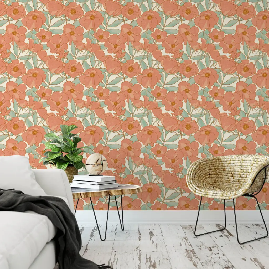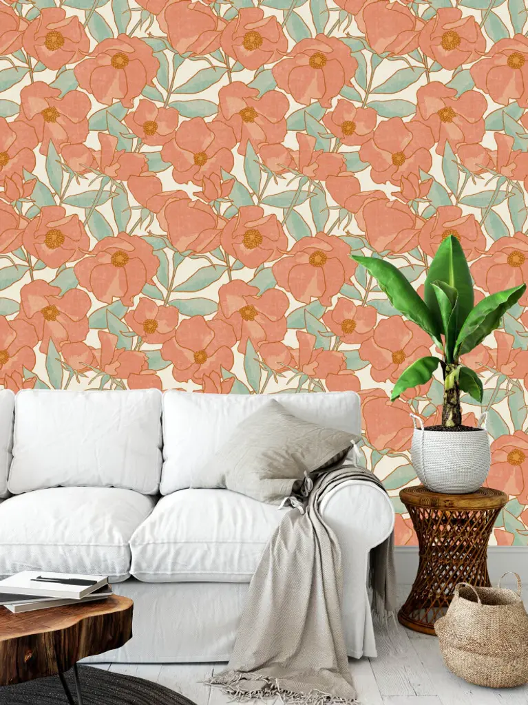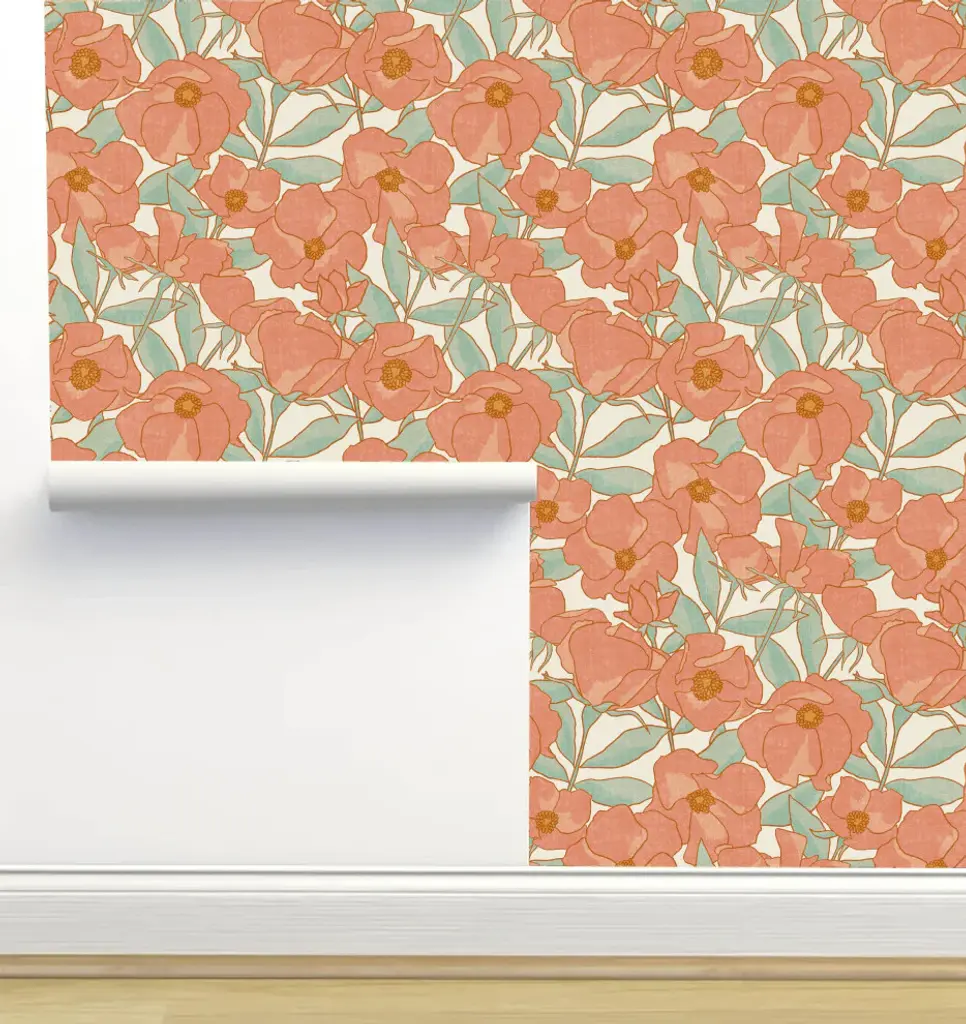 Each roll of wallpaper is custom printed to order and has a fixed width that covers 24 inches of wall space. Peel & Stick Fabric Wallpaper - Removable and Repositionable! Limitless Walls Fabric Peel and Stick wallpaper is a woven polyester fabric with an adhesive backing. Limitless Walls fabric is not like everyone else"™s, ours is the thickest most durable and easiest to install. You won"™t be able to find this anywhere else since we make it ourselves!• 100% opaque white polyester woven with adhesive backing• Eco-friendly and formaldehyde-, phthalate-, and PVC-free• To install, simply peel and stick• Easily removable and repositionable IMPORTANT NOTE Our wallpapers are not recommended for application over paints advertised as being stain-resistant or washable. These paints are crafted to prevent things from sticking -- including wallpaper. If in doubt, you can use Zinsser Gardz which is a clear primer that you can apply right over your current paint. If your wall has been recently painted, allow at least 2+ weeks for the paint to cure before applying wallpaper. Applying wallpaper over uncured paint can lead to bubbling. Our wallpaper will not stick to cement or textured walls.We highly recommend ordering a test swatch before committing to full rolls. While we have done our best to accurately represent the color and scale of this design, computer monitors aren''t the best way to determine how a printed color will look in person. It''s possible that the finished product may be slightly different than it appears in the preview. It is also important to test the adhesive on your unique surface.CARE INSTRUCTIONS:Gently wipe down with a damp cloth, soft cleaners such as dish soap can be used. The use of heavy cleaners or heavy rubbing can cause color to lift.Original Design by Amy MacCready.