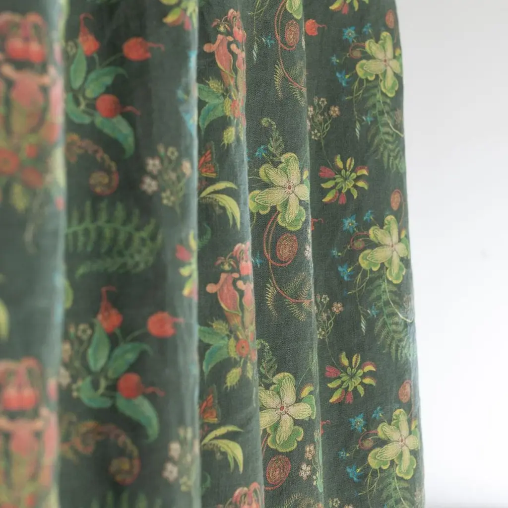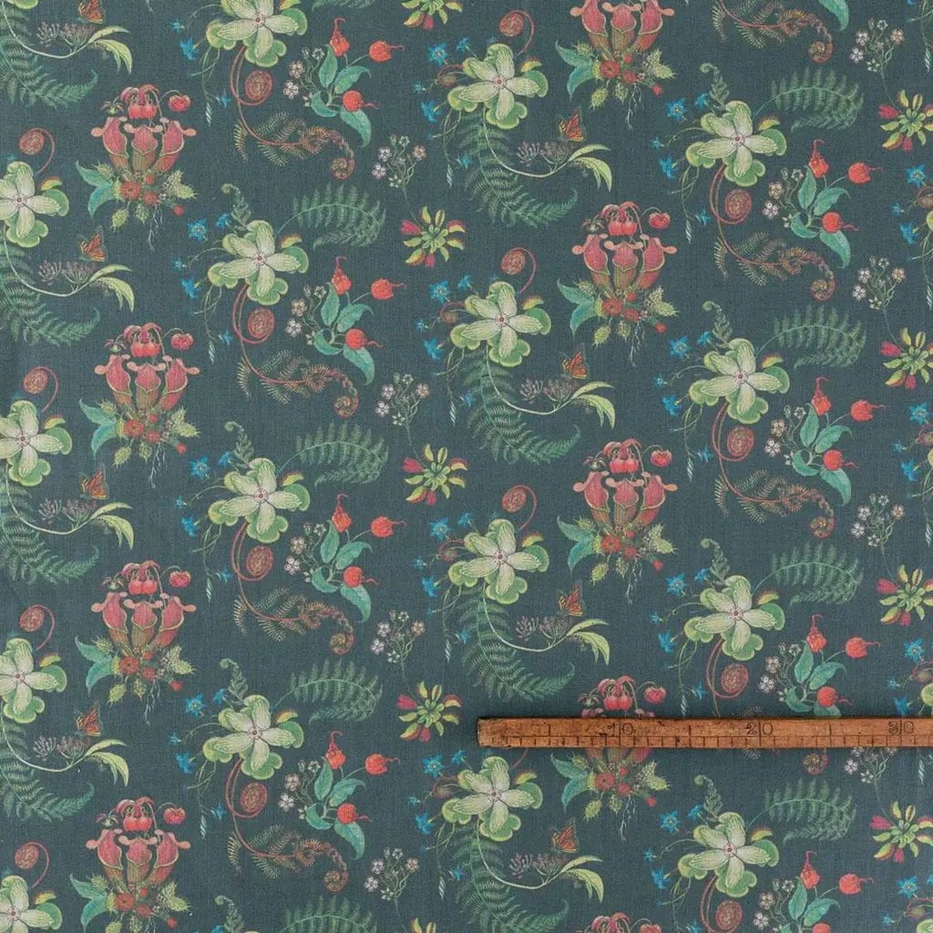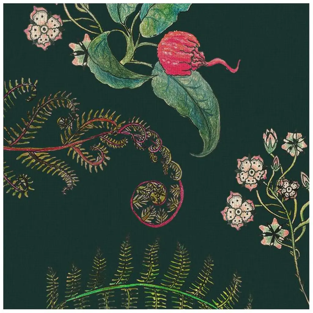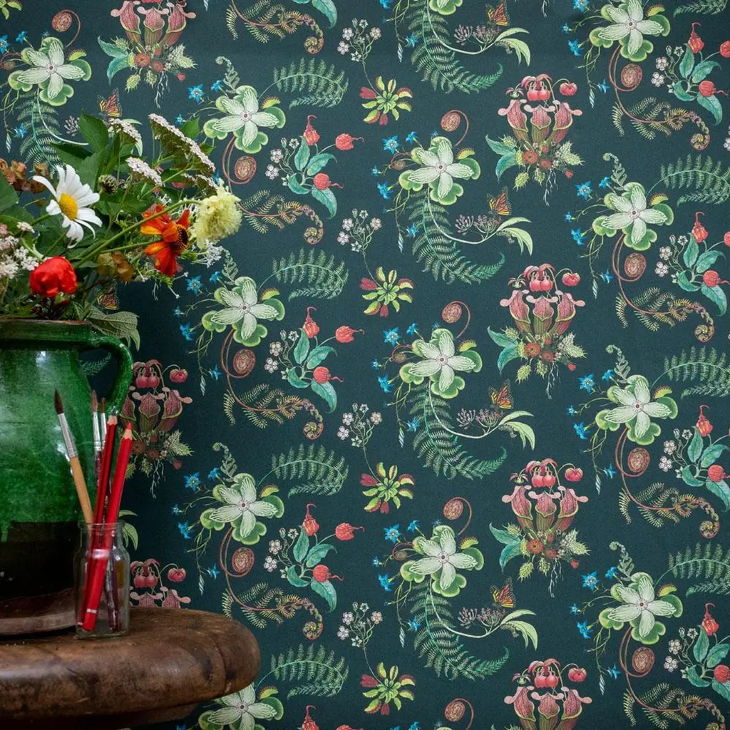 Collection: Carolina PosiesProduct code: 26EColor: ForestRoll dimensions: 70cm x 10m (27.6in x 10.9yards)Area: 7sq.m (8.4 sq.yards)Pattern repeat: 17.5cm (6.9in) Half DropWallpaper: Non-woven 147gsm Uncoated. Fire rating: Fire certified for both Europe and the USA. Classified to BS En 13501-1-1:2002, class B, s1, d0.Carolina Posies is a lush, hand-drawn design which celebrates wild species of the Southern States of the Carolinas. The designer is a conservation biologist who grew up in this beautiful area. The rich colors and graphic details are matched by the interest of the many extraordinary species depicted, including monarch butterflies and their larval food-plants, milkweed, Carolina Reaper chilli peppers, devil's paintbrush, pine barren gentian, grass of Parnassus and carnivorous plants. Carolina Posies is a detailed botanical, part of a growing passion in interiors for honouring the natural world. Furthermore, for every roll of wallpaper sold, 100m2 of critical wild habitat is preserved through World Land Trust.This is an eco-friendly fine gicleé digitally-printed “real” wallpaper. It is printed in the UK on a natural non-woven cellulose-based substrate made from recycled materials, recycled polyester (PET) fibre and recycled wood pulp. The production process is solvent free with minimal waste and energy inputs.