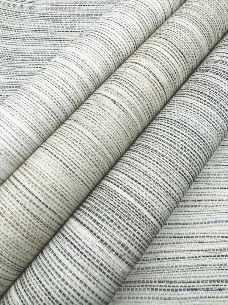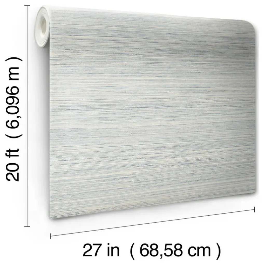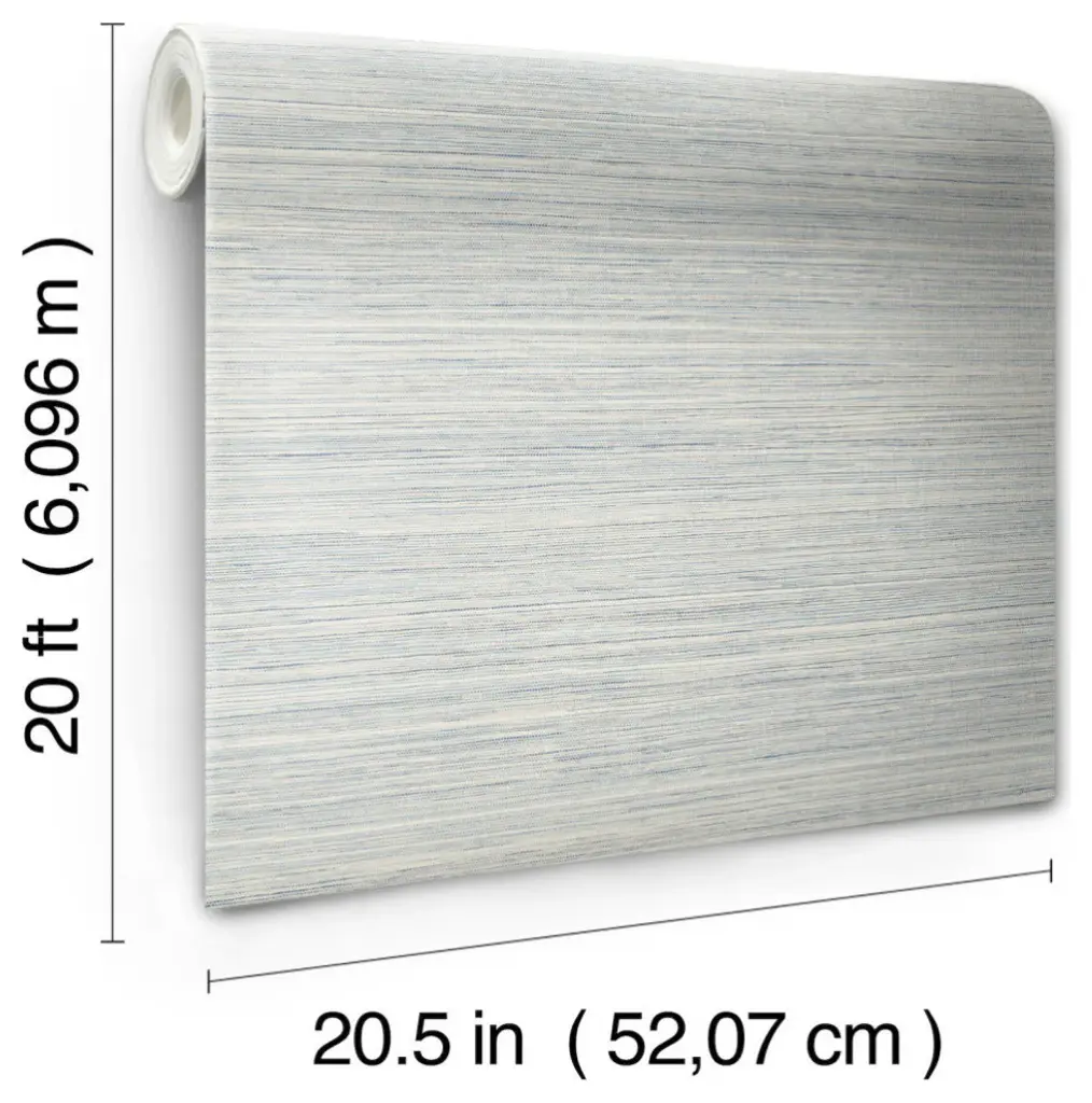 This natural feel of pattern Cattail Weave emulates the look and feel of aquatic marsh grass, with no paneling effect, for seamless hanging, shown in soft sky blue with beige linen. This blue cattail weave peel and stick wallpaper measures 20.5 inches wide by 20 feet long, covering approximately 34.2 square feet per roll. The ultimate pattern inspirations for architectural finishes, motifs, and textures as found in nature. Cerused woodgrain, distinctive woven grass, cork, stone, clay, marble, and mother of pearl bring warmth and depth to surrounding spaces with familiar comfort. Peel and Stick non woven material; 24-in repeat, straight match; Washable and fully removable; 27-in by 20-ft long roll; Covers about 45 square feet