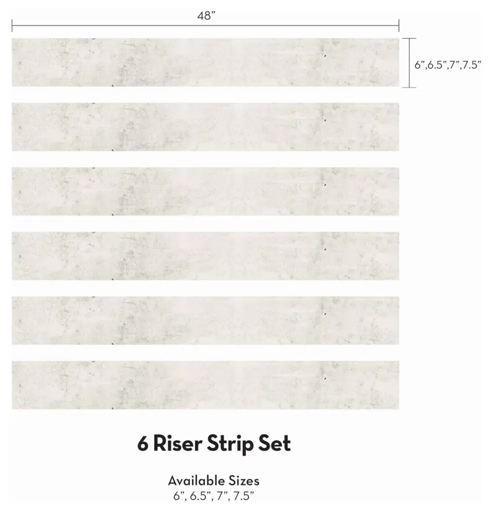 Cement Concrete stair riser strips are a great way to add texture and depth to any staircase! They are perfect if you''re looking to create a rustic, yet modern design with your stairs! DIY decorating has never been easier with this repositionable vinyl that can be easily applied and removed without any stress or mess!This re-positionable wallpaper is designed and made in our studios in New Jersey. The designs are printed onto an adhesive-backed vinyl that can be removed, repositioned, and reused. The wallpaper does not leave residue on your walls and is ideal for DIY room makeovers without the mess and headaches of traditional wallpaper.Sizes:48"w x 6"h48"w x 6.5"h48"w x 7"h48"w x 7.5"hWhat''s Included6 sheets of peel-n-stick vinyl stair riser strips