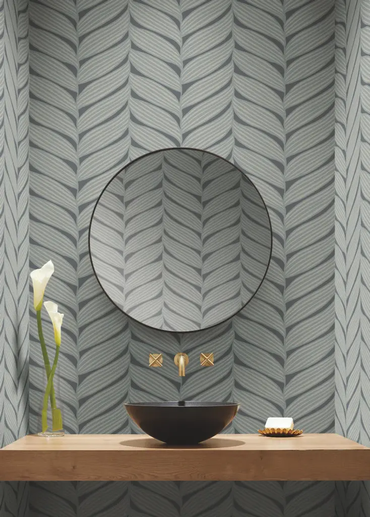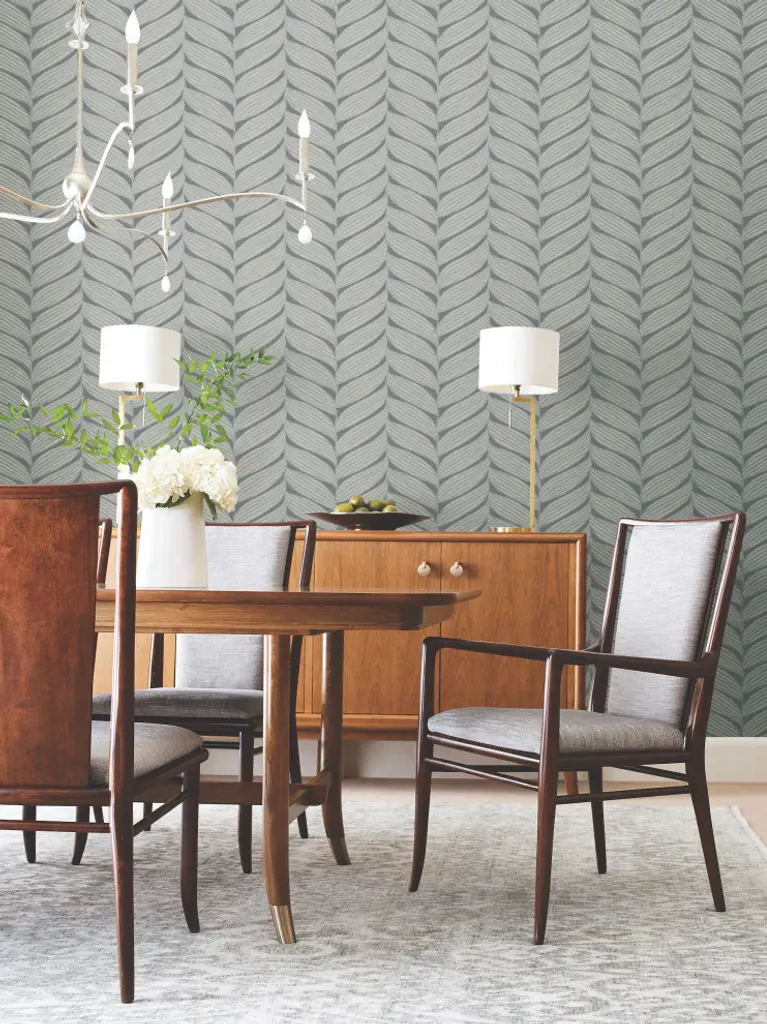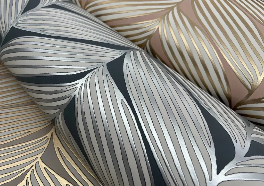 Charcoal & Silver Luminous Leaves Wallpaper
