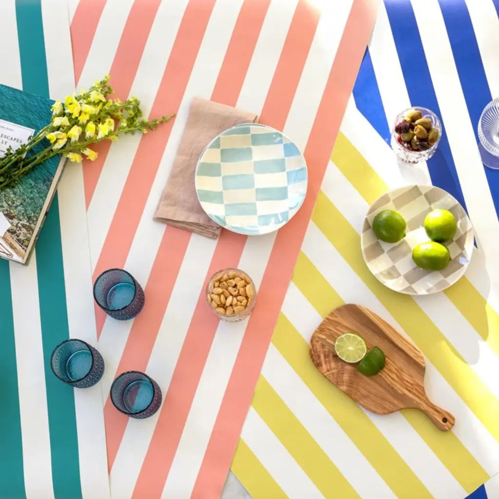 Add some beach vibes to your kid's space with bold pink and white cabana-inspired stripes. A super playful pattern with endless installation possibilities, it's a backdrop that feels right at home in a bedroom, play space or even a bathroom. The wallpaper is made of high-quality, self-adhesive poly-woven fabric. And its peel-and-stick construction makes it easy to remove, so you can enjoy the look without a long-term commitment.