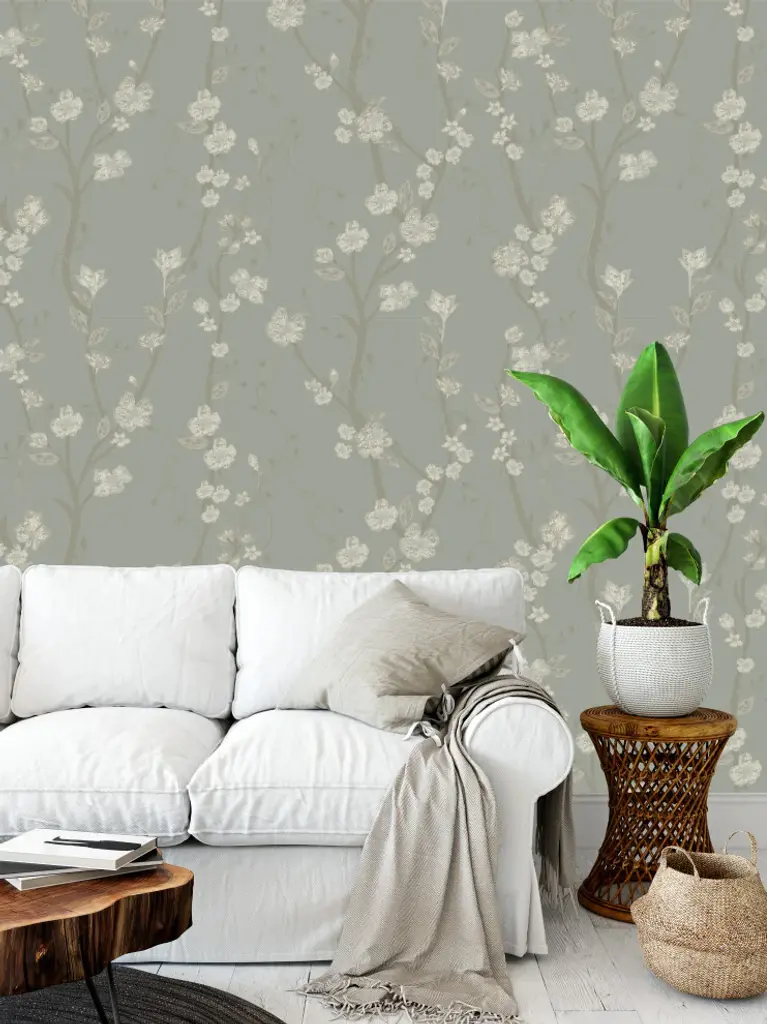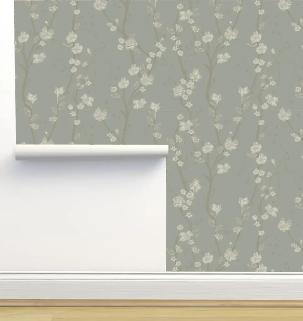 Cherry Blossom Gray Wallpaper By Monor Designs, 24"x144"