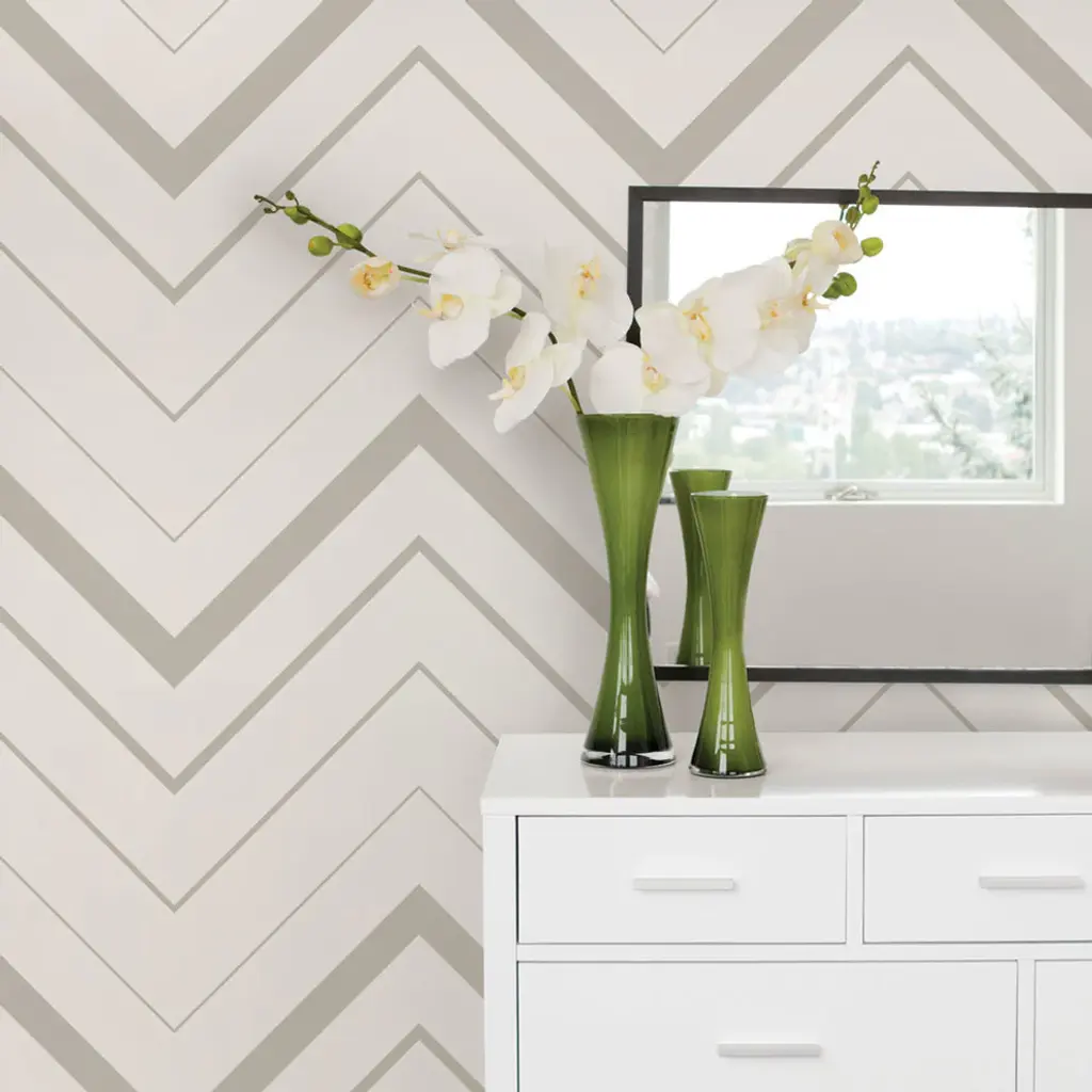 Chevron Bold Peel And Stick Vinyl Wallpaper, Gray, 24"w X 60"h
