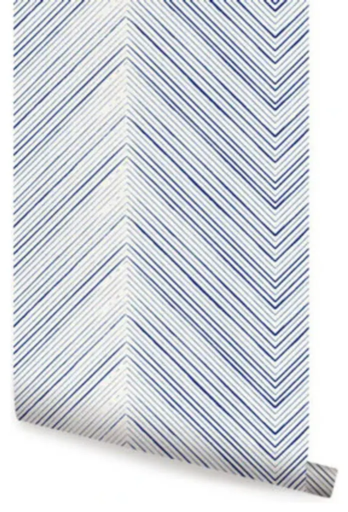 Chevron Lines Peel And Stick Vinyl Wallpaper, Navy, 24"w X 108"h