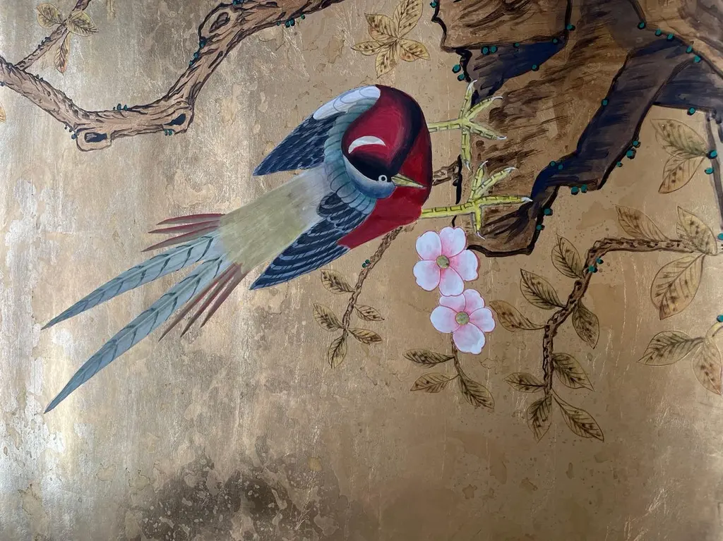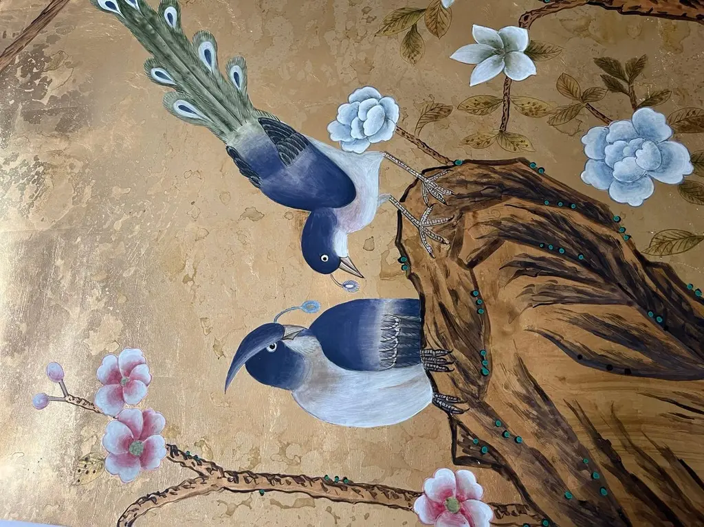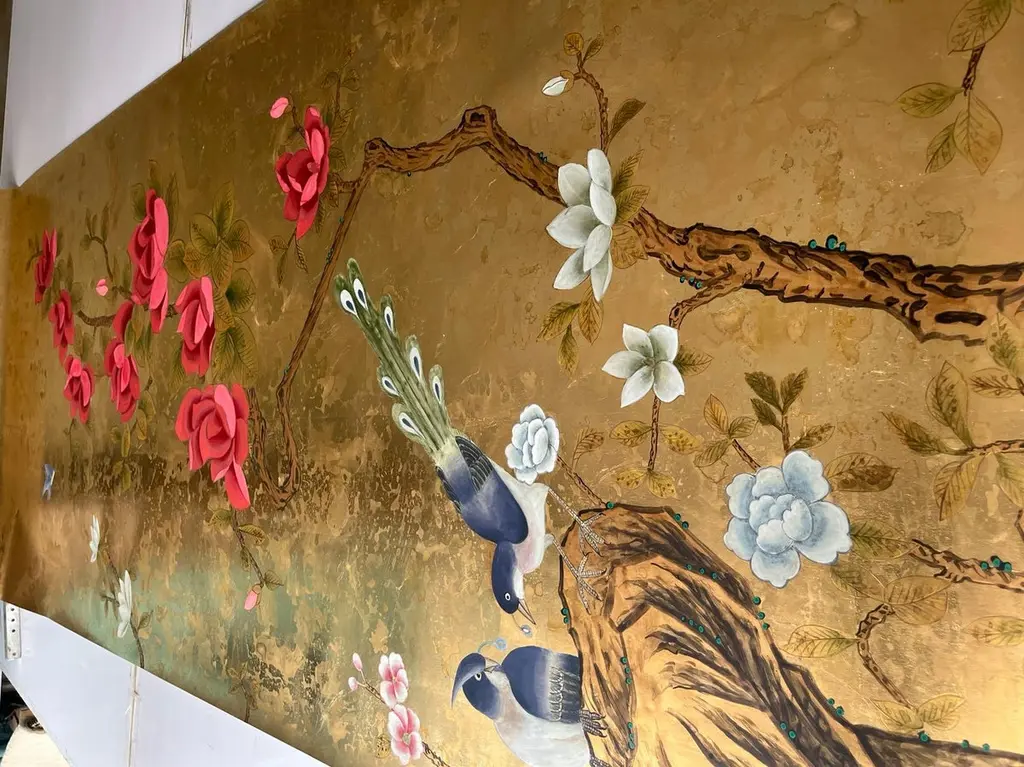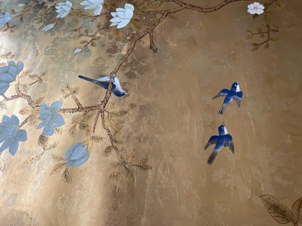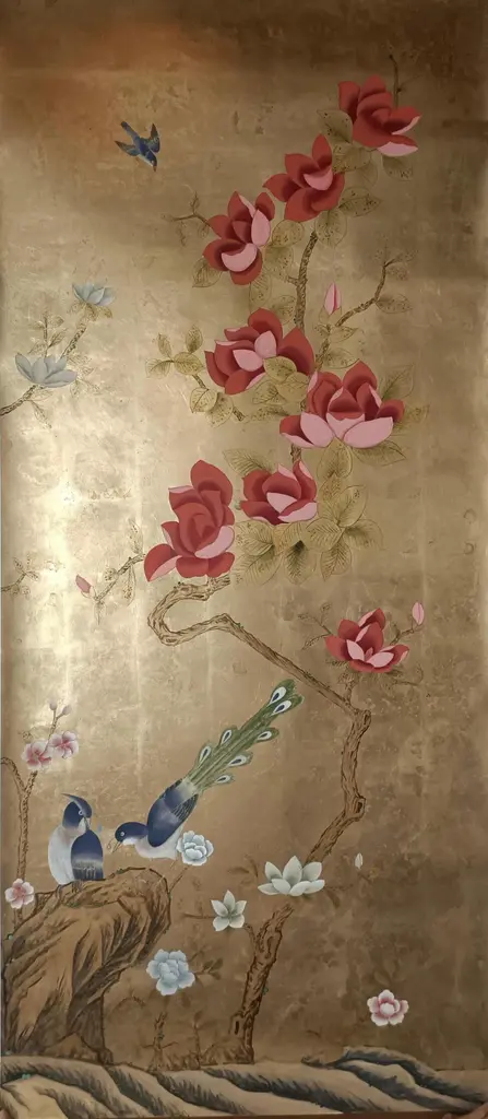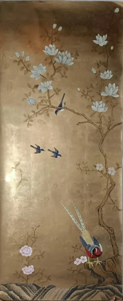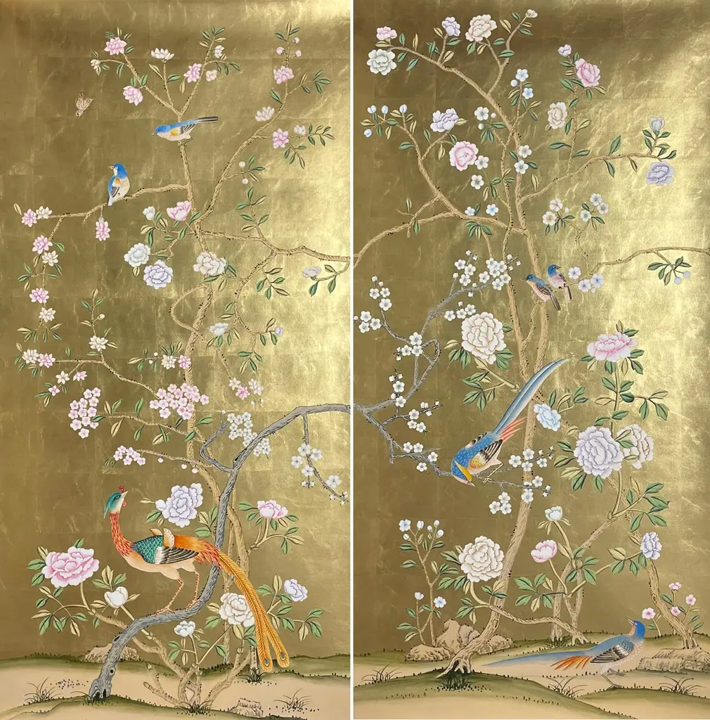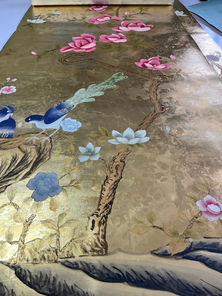 If you love the look of De Gournay wallpaper but not the price, this is for you. Measures: 3 ft x 8 ft.The colorways in this sections present our latest colorways, which can be applied to any designs and any base ground (silk, tea paper, metallic, fabric and etc.) Price The listed price is for 2 panels of 36" wide x 96" high, background is on gold metallic with antiques. We accept custom size and painting colors. Dear customer, please note: For safe delivery, all the panels roll in a strong tube. Please have the professional installer to install the wallpapers, there is a standard overlap between panels, and a black dot marked on the top and bottom of each panel, please check well before installing. Free standard shipping Free 5-10 Business Days (Worldwide).