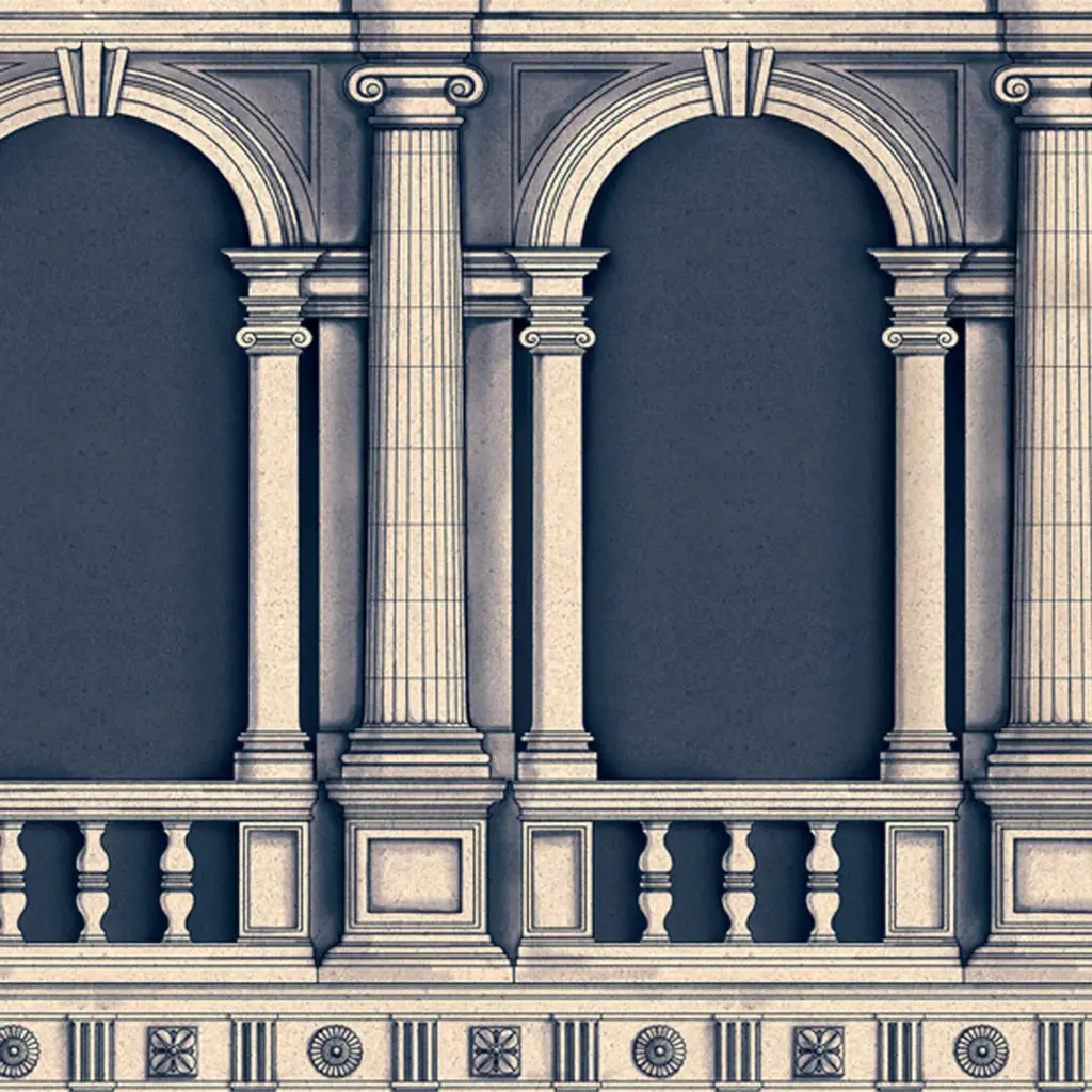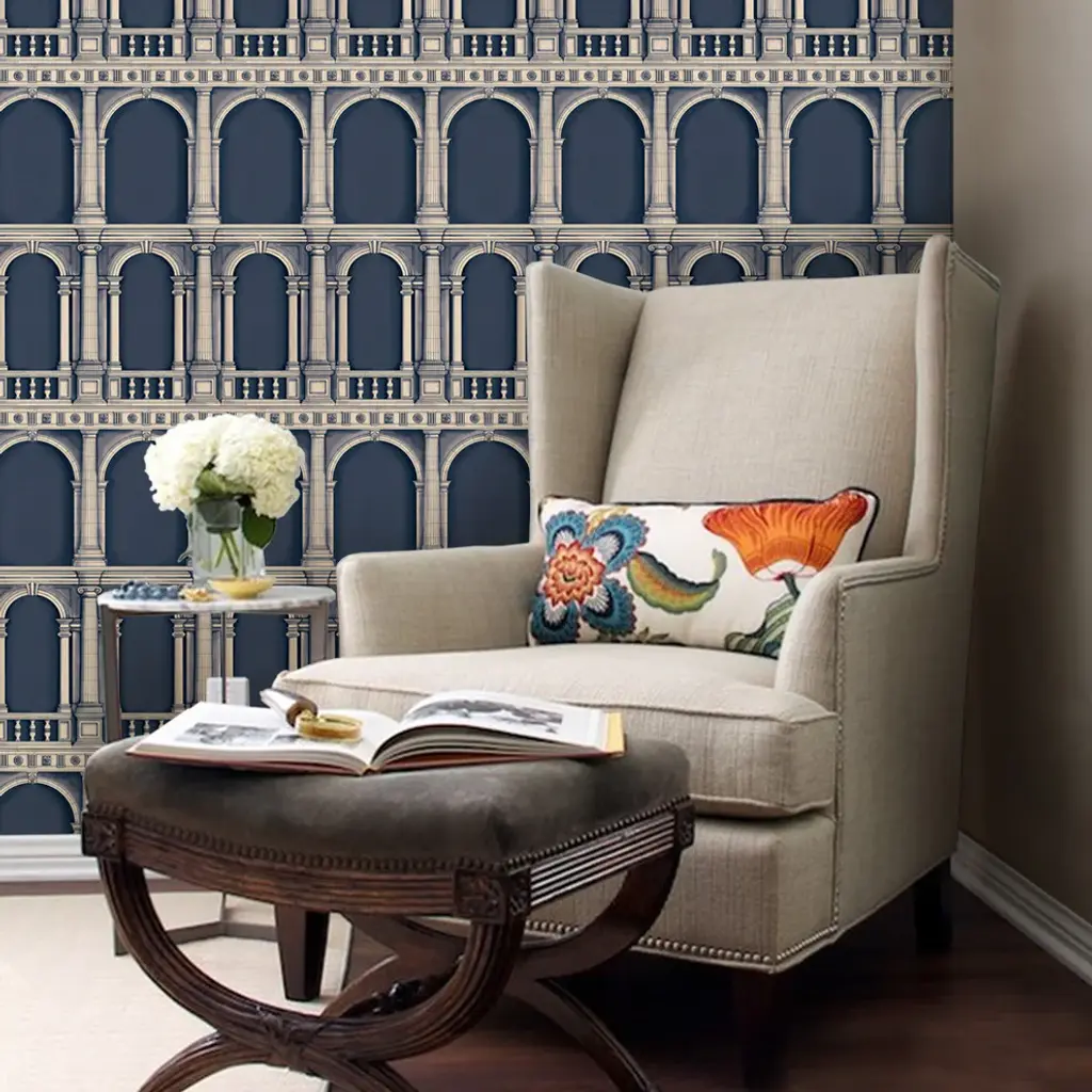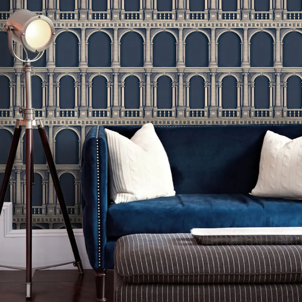 Classic Architecture Peel And Stick Vinyl Wallpaper , Navy, 24"w X 60"h