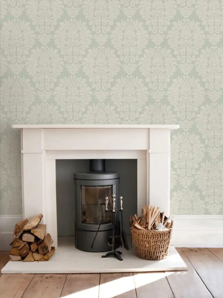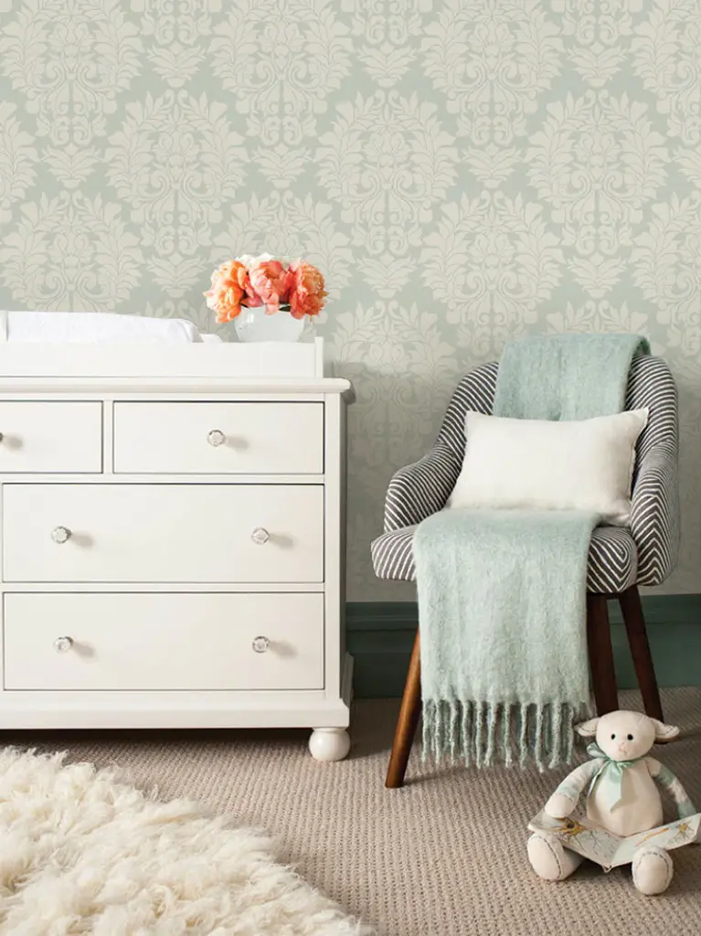 Classic Damask Peel And Stick Vinyl Wallpaper, Sage Green, 24"w X 108"h