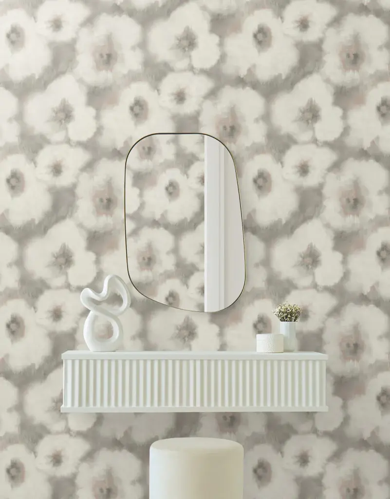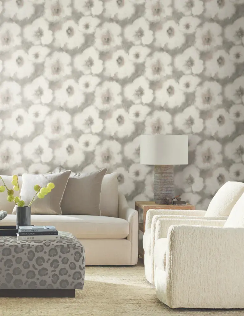Blended Floral''s oversized blooms are created with diffused shades of grey and salmon as they spread across a linen canvas. This Blended Floral Wallpaper measures approximately 20.5 inches wide by 33 feet long, measuring approximately 56.4 square feet per roll. Organic simplicity and lustrous adornment for the modern home. Unpasted non woven material24-in repeat, drop matchWashable and strippable20.5-in by 33-ft long rollCovers about 56.4 square feet